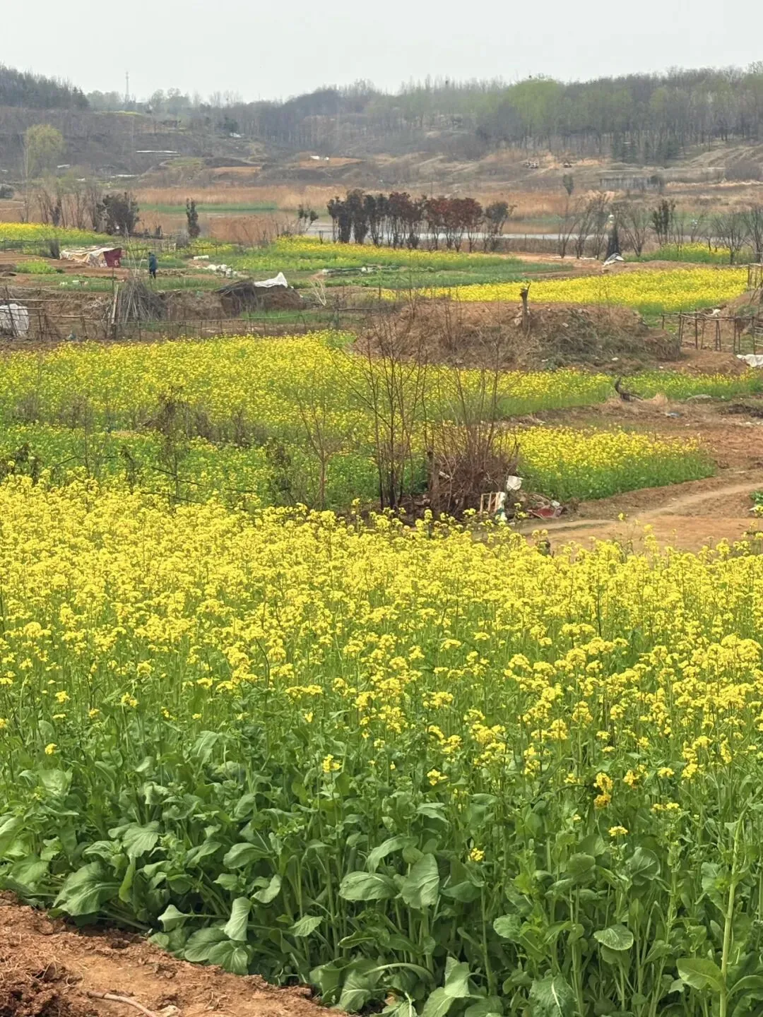 西四环旁大片金黄油菜花,西侧还藏着粉梅,人少空旷,拍照无遮挡。