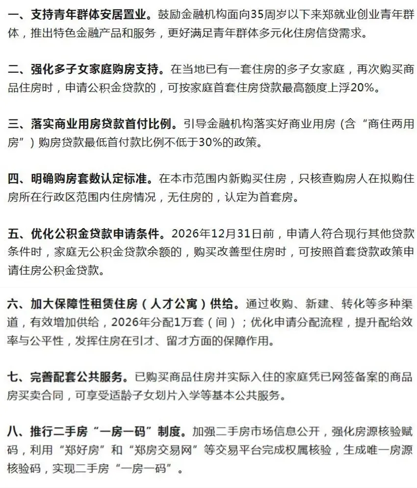 为推动房地产高质量发展,郑州即将出台涉及信贷支持、公积金优化、政务服务等方面的房地产市场发展新举措,适时向社会发布施行。包括支持青年群体安居置业、强化多子女家庭购房支持等。