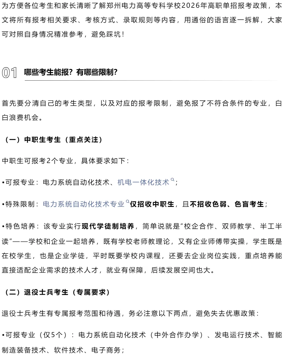 新高考需要职业规划前置,关注本省高考政策,了解高校招生章程,提早准备志愿填报点击下方二维码领取:2023-2025年在河南招生院校专业分数线、位次及选科说明新高考“新”在哪里?到底改了啥?选科应该怎么选?高考志愿怎么填?专业、院校怎么选?为帮助广大考生、家长针对性解决新高考难题,跨越新高考改革信息差,我们会定期讲解高考最新政策,进行新高考升学规划指导培训,扫上方二维码了解更多新高考政策点击以下链接查看郑州电力高等专科学校