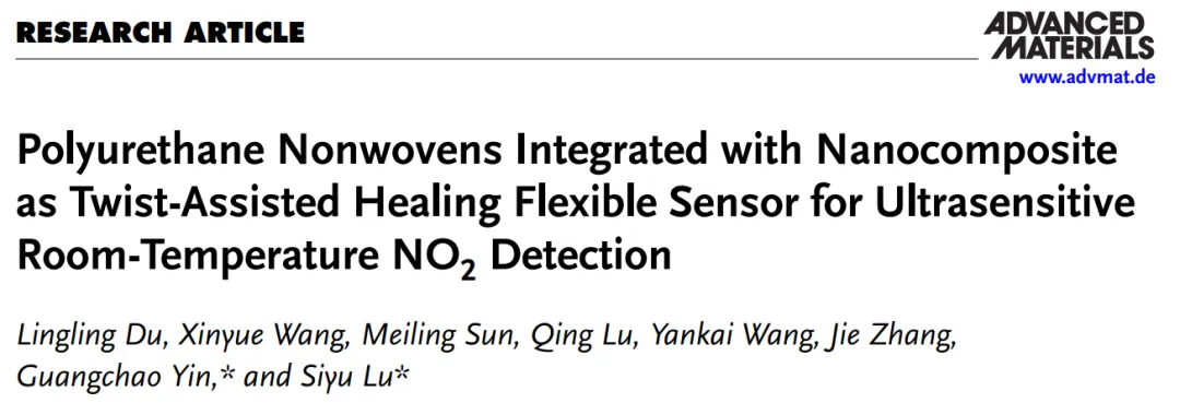 山东理工大学尹广超教授/郑州大学卢思宇教授科研团队《Advanced Materials》成果:扭曲自愈柔性传感器,实现室温超灵敏NO₂检测