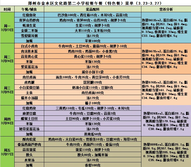 健康饮食是孩子成长的根基,我们秉持着学生膳食“安全、均衡、营养”的原则,根据季节挑选时令蔬菜、肉蛋、水果、谷物等新鲜食材,制定每周营养食谱,精心烹饪学生的每一餐。让我们一起来看看本周的食谱吧!