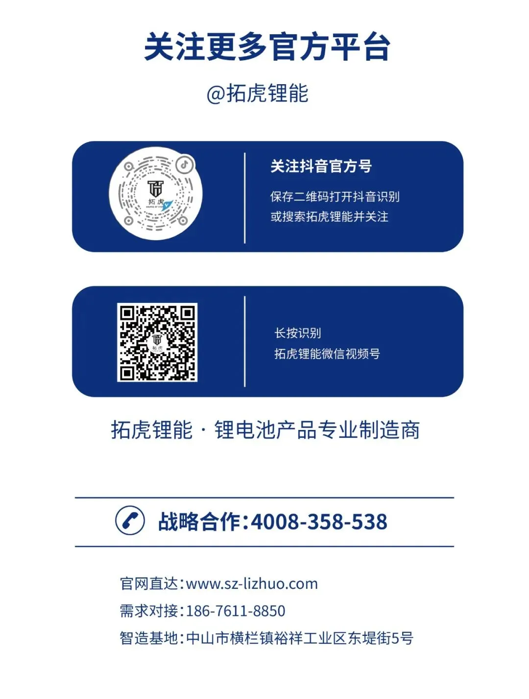 作为专业锂电能源解决方案提供商,拓虎锂能始终坚守初心,秉持“品质为先、用户至上”的核心理念,在新能源赛道上稳步前行,用实力赢得市场与用户的双重认可。