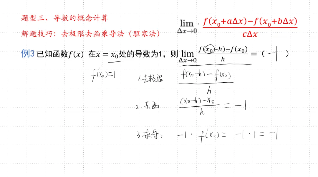 >郑州高中数学——导数的概念及其意义 (高考必考题型三:导数的概念计算) (必学解题技巧:驱寒大法)