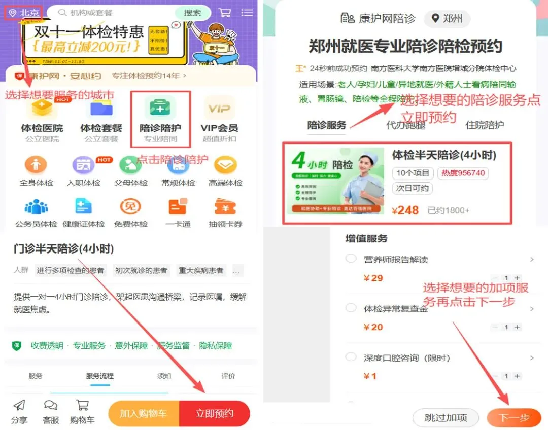 ③按需选择【具体的陪诊服务】进行预约,并填写信息及陪诊时间