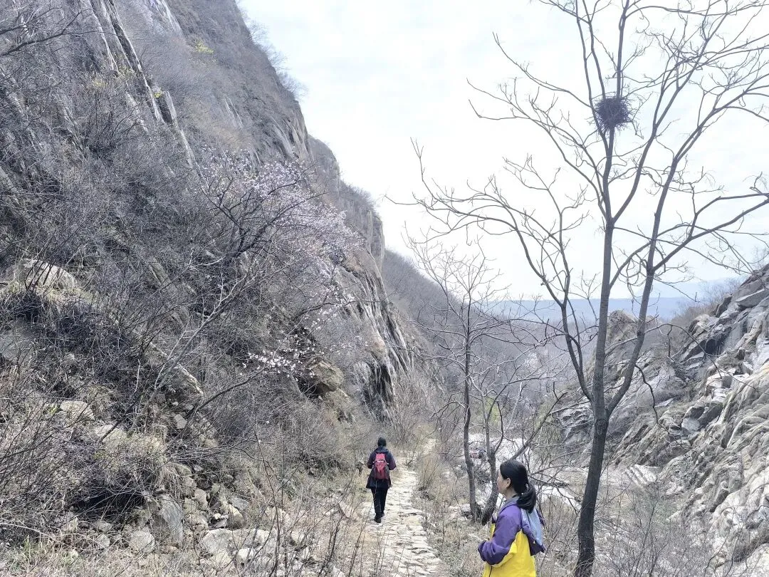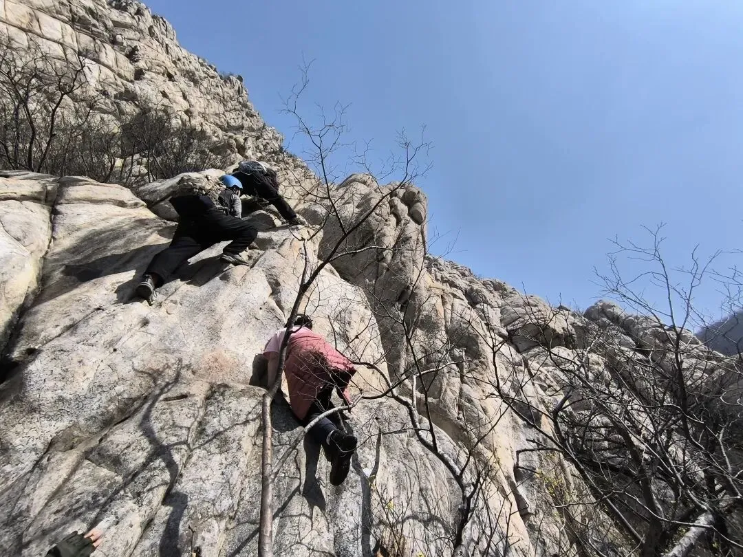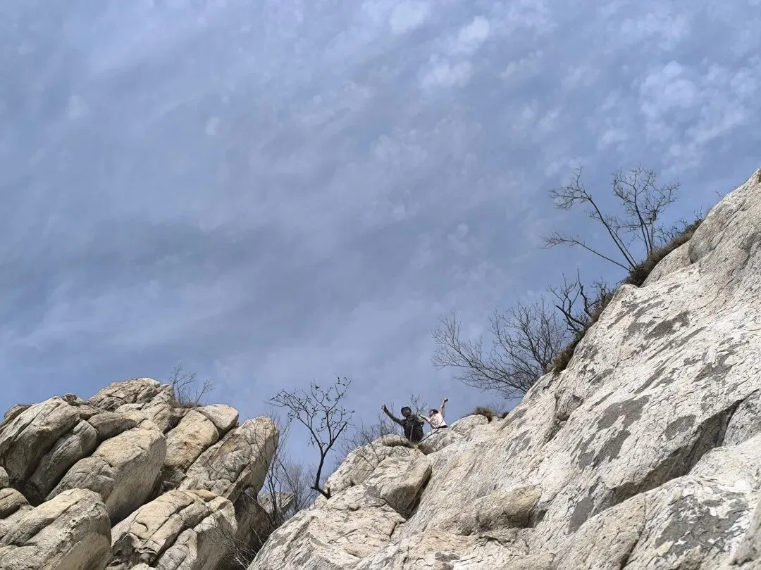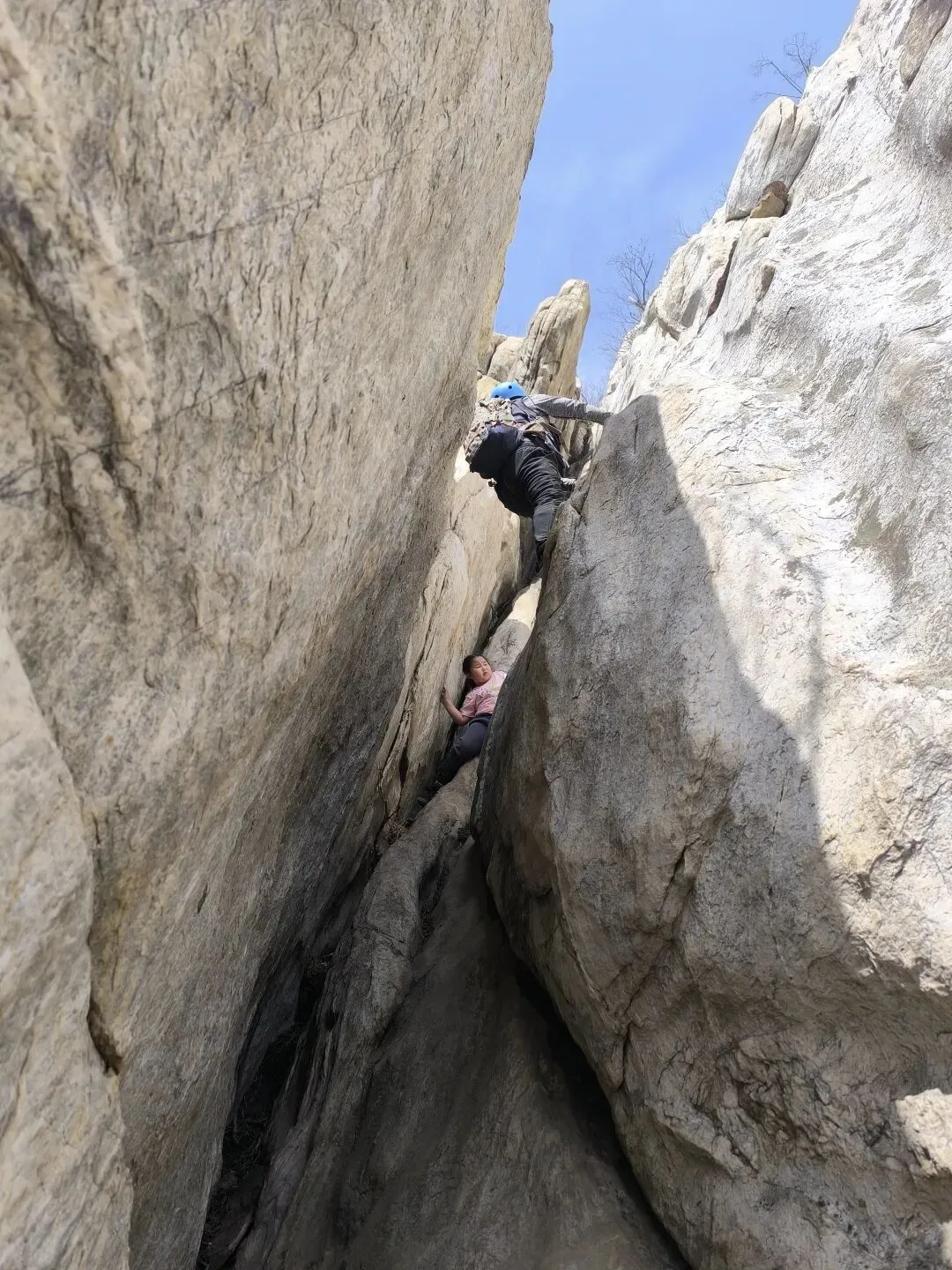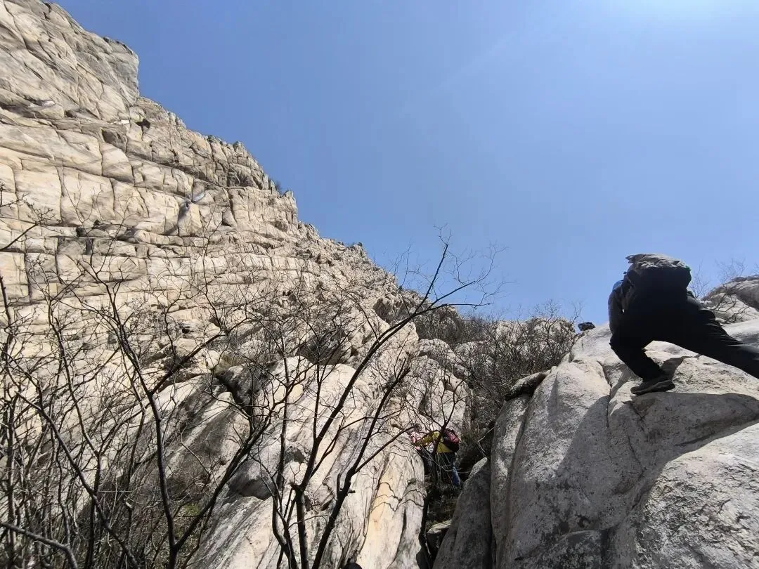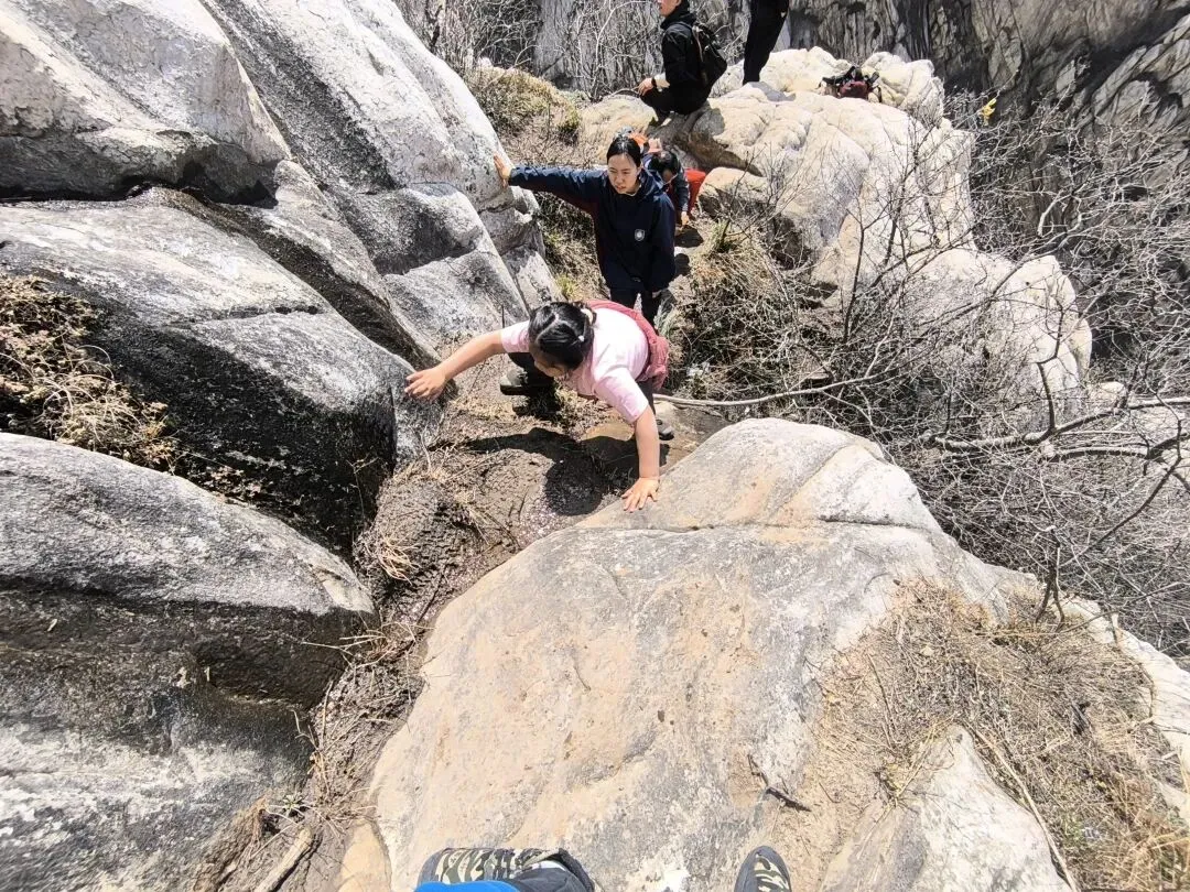 本周六,天气晴朗,云淡风轻,正是爬山好日子。听说玉皇沟进山口封了,队长带我们上灵隐峰——今年应该是第二盘了。 空山幽谷,漫山遍野点缀杏花,绽放春色,情不自禁深呼吸;鸟儿鸣唱,泉水叮咚,新芽吐绿,令人心旷神怡! 迷你版瀑布,飞流直下,水花四溅,驻足凝望,心情指数五颗星。 一路拔高,不觉气喘吁吁,走到这里休息一下,喘口气,哈哈,这个角度,像只戴着披风的乌龟,想要飞上天! 近两个月没有爬山了,体力与体能都需要再次恢复,还好,今天路线不长。 第一道攀爬点,队长徒手攀岩,准备下绳。几路爬山大神,各显神通,徒手爬上去了。 茉同学腰系安全绳,凭借队长和舅舅指挥加助力,第一关,轻松拿捏。 一路向上,岩壁攀爬居多,小朋友找个树杈休息,开心地说,这可以天然沙发,真舒服! 开满鲜花的山坡,芬芳扑面而来,小朋友忍不住赞叹,妈妈,这里也太美了吧,花儿可真香啊! 妈妈,我坐这儿拍照,少个道具吧?小朋友看到舅舅在剥沃柑,笑着问。