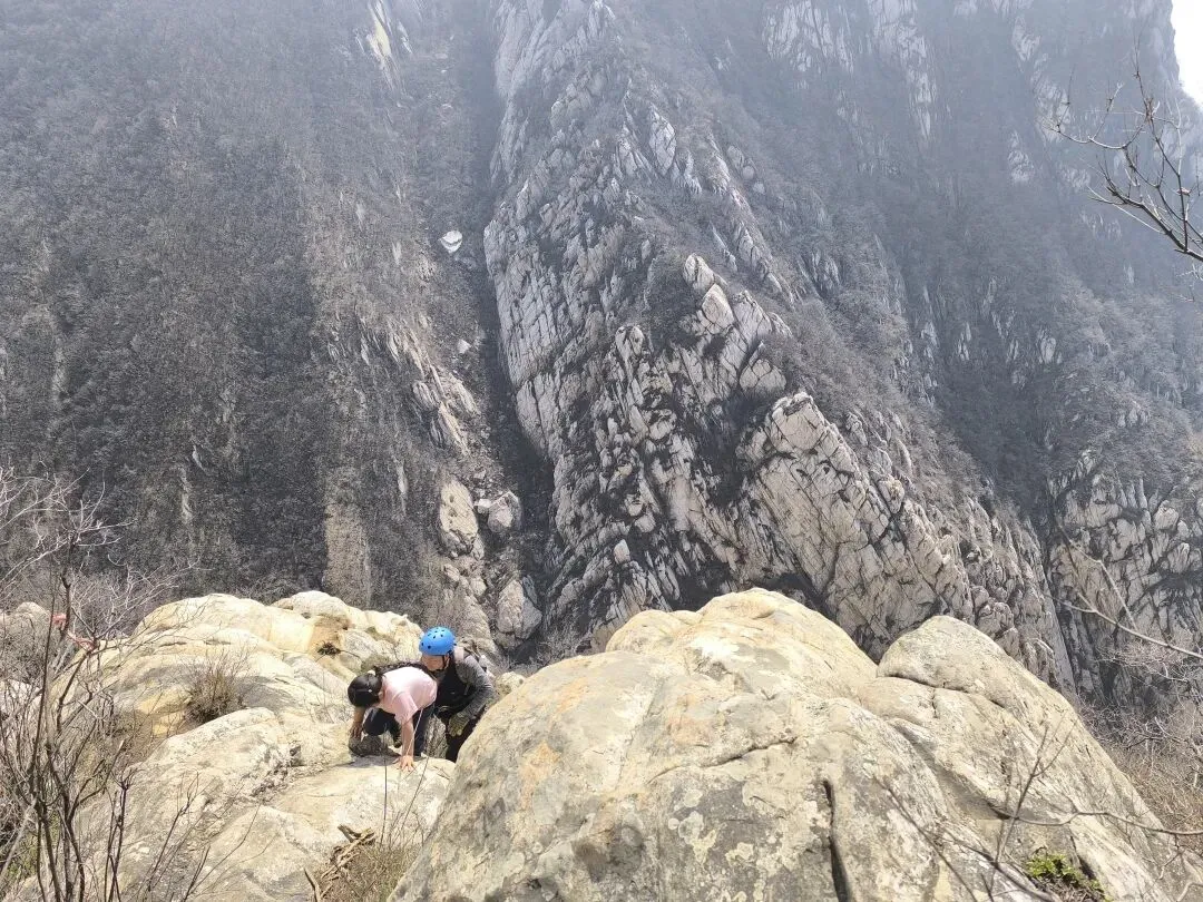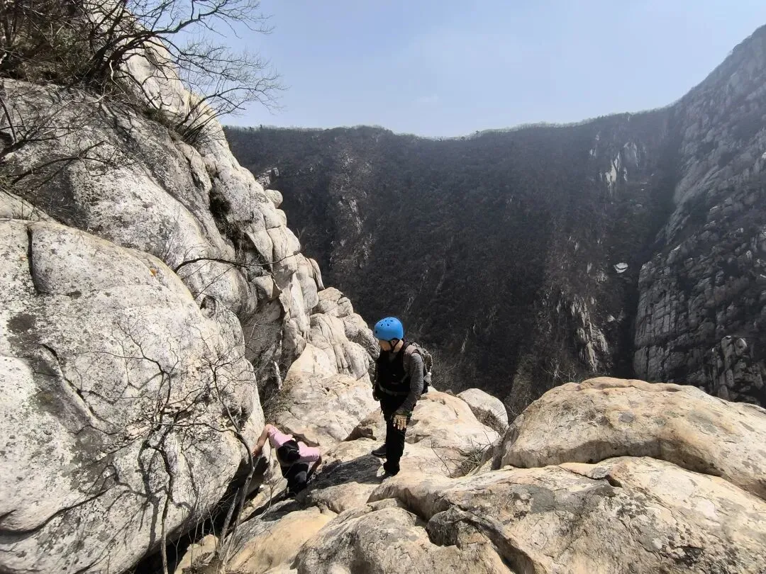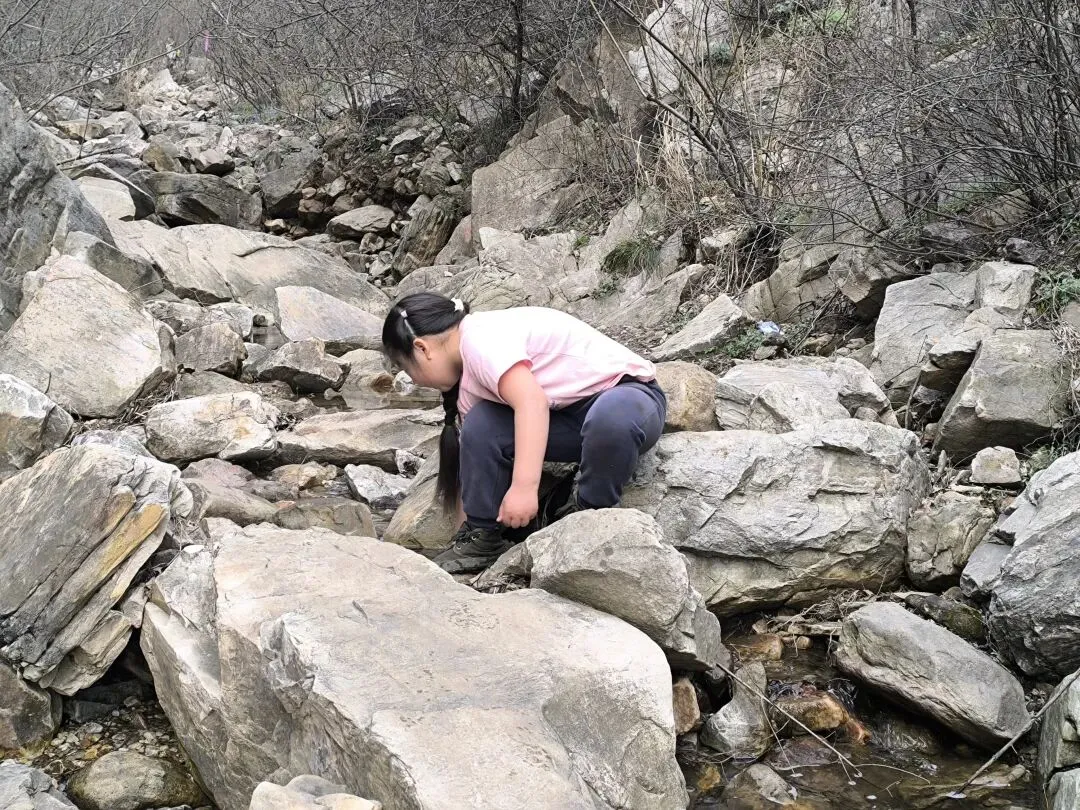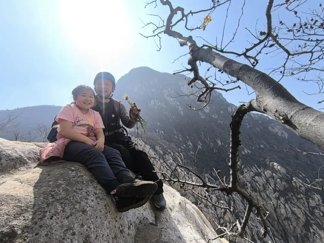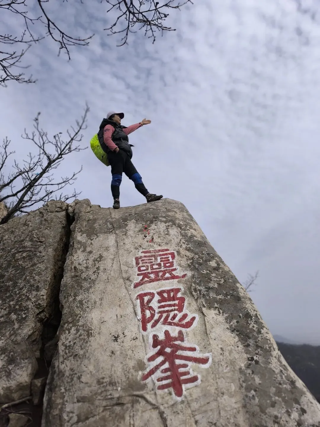 本周六,天气晴朗,云淡风轻,正是爬山好日子。听说玉皇沟进山口封了,队长带我们上灵隐峰——今年应该是第二盘了。 空山幽谷,漫山遍野点缀杏花,绽放春色,情不自禁深呼吸;鸟儿鸣唱,泉水叮咚,新芽吐绿,令人心旷神怡! 迷你版瀑布,飞流直下,水花四溅,驻足凝望,心情指数五颗星。 一路拔高,不觉气喘吁吁,走到这里休息一下,喘口气,哈哈,这个角度,像只戴着披风的乌龟,想要飞上天! 近两个月没有爬山了,体力与体能都需要再次恢复,还好,今天路线不长。 第一道攀爬点,队长徒手攀岩,准备下绳。几路爬山大神,各显神通,徒手爬上去了。 茉同学腰系安全绳,凭借队长和舅舅指挥加助力,第一关,轻松拿捏。 一路向上,岩壁攀爬居多,小朋友找个树杈休息,开心地说,这可以天然沙发,真舒服! 开满鲜花的山坡,芬芳扑面而来,小朋友忍不住赞叹,妈妈,这里也太美了吧,花儿可真香啊! 妈妈,我坐这儿拍照,少个道具吧?小朋友看到舅舅在剥沃柑,笑着问。