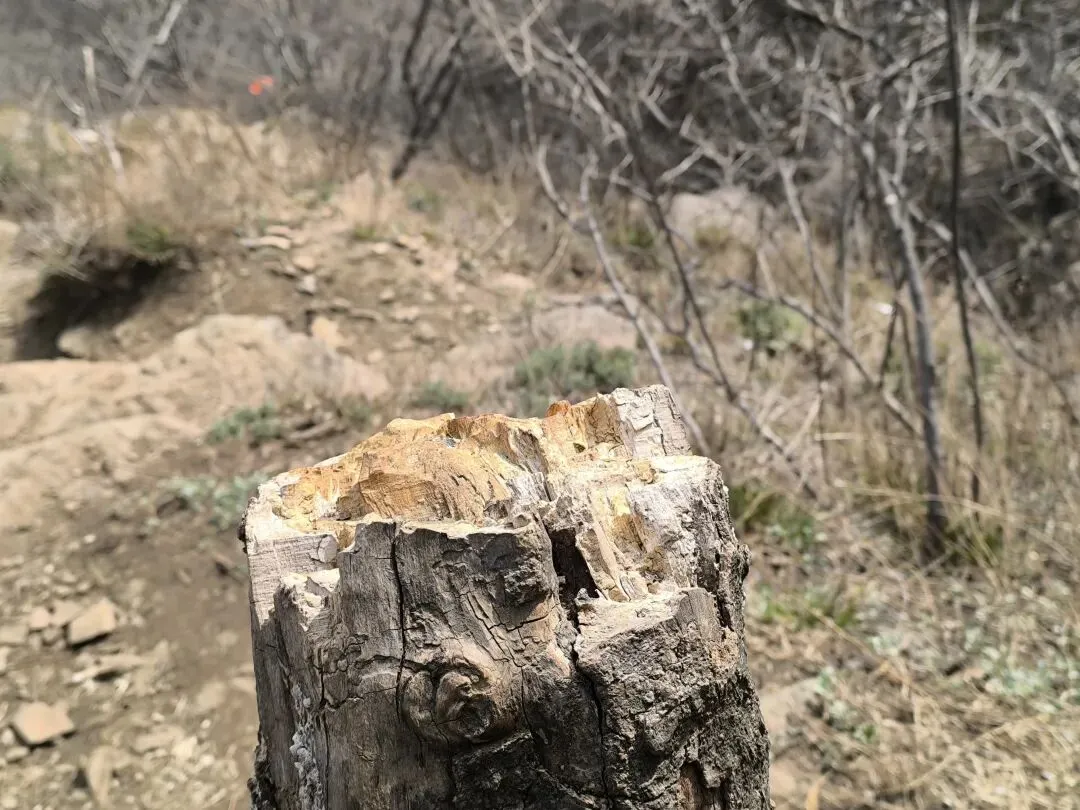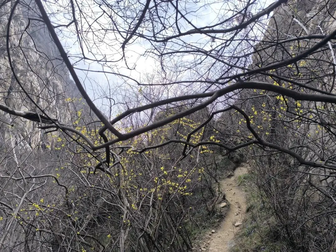 休整一下,继续攀爬,舅舅领路,小朋友紧跟。 继续保持昂扬斗志,茉同学的灵巧和体力都可以发挥出来了。 后面有姐姐鼓劲儿,前面妈妈指挥,这处湿滑点,顺利过关。 回头望,光秃秃的山,被太阳眷顾,泛着金光。远处县城若隐若现,别有一番风景。 最佩服小朋友的毅力,能一个人搞定的,就自力更生,靠谱。 这个缝隙边上的坡,几乎垂直,可是要了我的体力,看似简单,实则由于土多湿滑,必须抓住树枝,一次抓四五根,一步一步爬。有两次,脚下一滑,整个人靠双手拽着树枝撑着,还好,我也算训练有素,除了体力消耗大,又一次经得起考验了。 费尽周折,俩人上去了,我在半山腰看风景,其实是,我一个人不敢上爬了,恐惧消耗体力,内耗果然是前进的天敌。不上不下的感觉,真实体验了,上,胆怯,离悬崖太近了,没人打保护,不敢;下的话,不甘心,好不容易爬了一半。 舅舅和小朋友举手庆祝终于又过一关,而我在崖壁半腰等待,和下面的小伙伴一起,等队长带绳过来。 得知旁边的岩壁容易爬,而且离悬崖远,我决定下去了,搭上裤子(下去的话,屁股摩擦岩石,裤子肯定会磨坏)也得下去。 大姐夫助我一个膝盖当指点,我顺利爬上去,基本没拉安全绳,就如他说的,四肢着地,慢慢爬上去就可以了。 人就是这样,当觉得安全感足够了,力量也就来了,这个难点,上次是队长下绳后我借力而行的。 吃个人参果,补充能量,吃点干粮,喝点水,休息休息,体力恢复,准备下山。 自然让人浮想联翩,敬畏之心油然而生。花开花谢,草枯草绿,四季轮回,生生不息。 这棵树,枯死了,上次好像还在,这次已经成为树桩。树下新苗,悄悄露出脑袋,是一缕缕崭新的希望。 连翘花朵崭露头角,嫩黄嫩黄,犹如繁星点点,为山谷添姿增色。 鸟巢,山路,花香,溪水……,大自然的馈赠,大自然的疗愈。 往日必须用绳的难点,慢慢变得可以徒手攀爬了,自信心更强了。 感谢队长与队友帮助与陪伴,新春再刷灵隐峰,2026第四爬愉快地画了上句号。