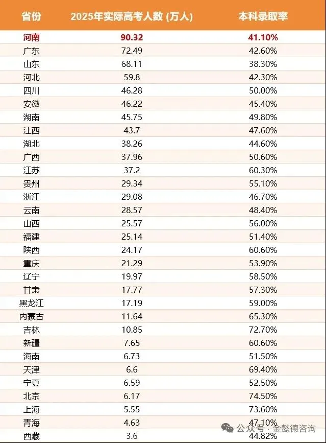 2025年河南夏季纯高考人数高达90.7万,毫无悬念稳居全国第一。