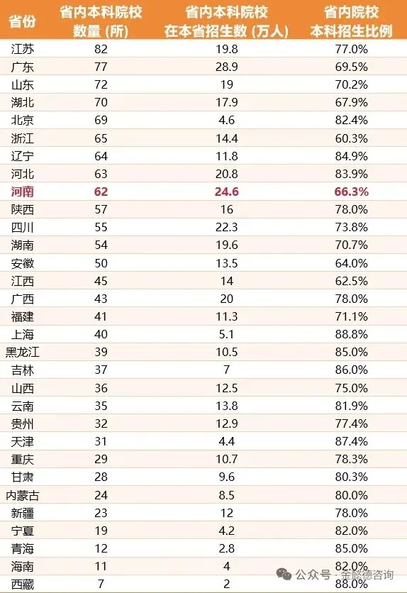 反观经济强省江苏82所、广东77所,河南优质本科资源缺口巨大。