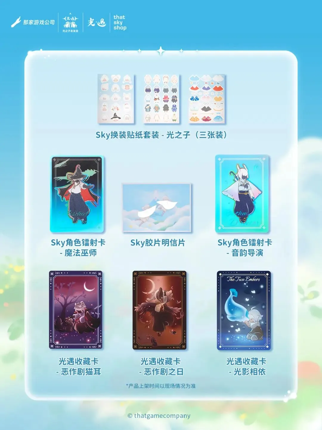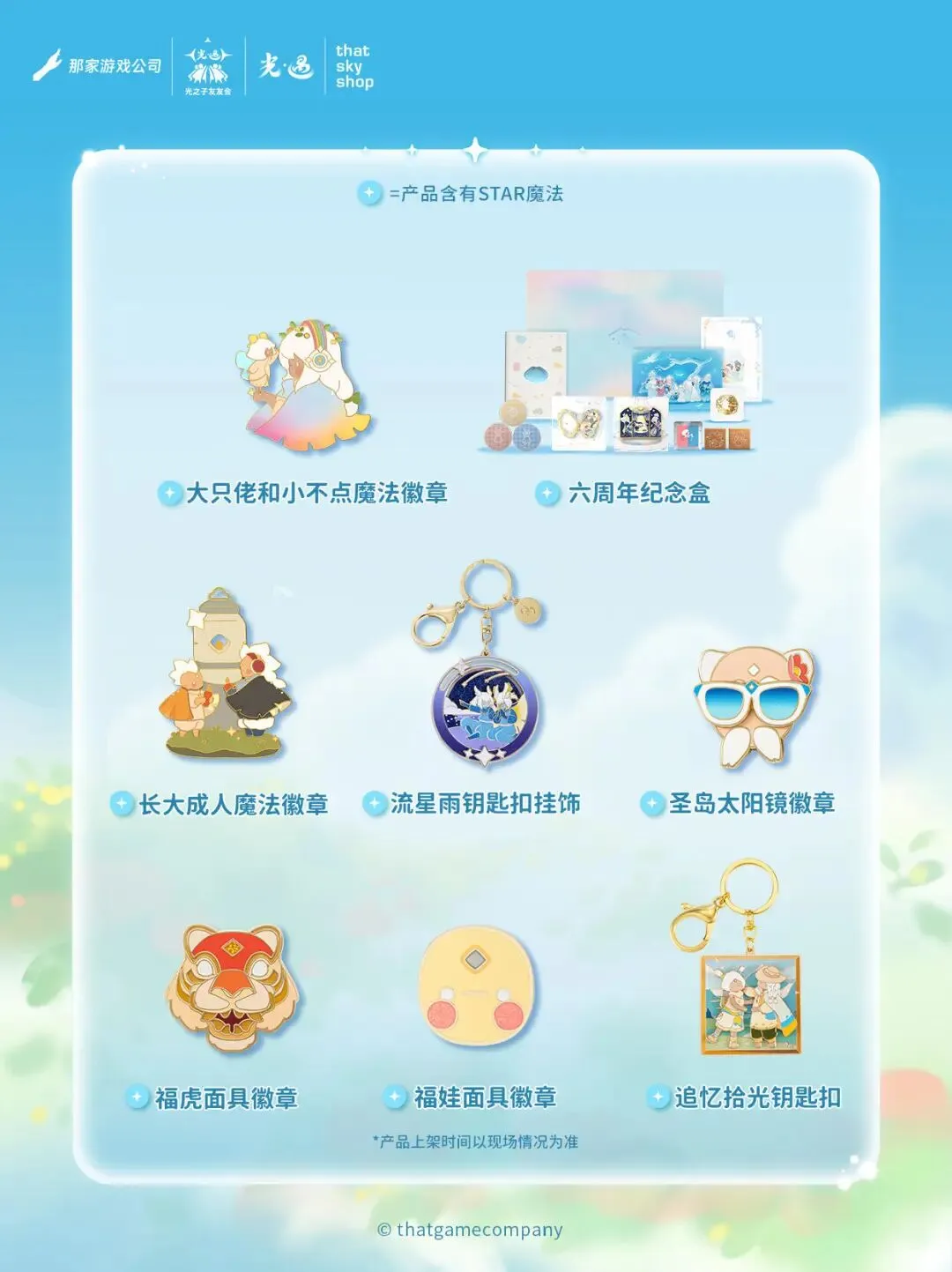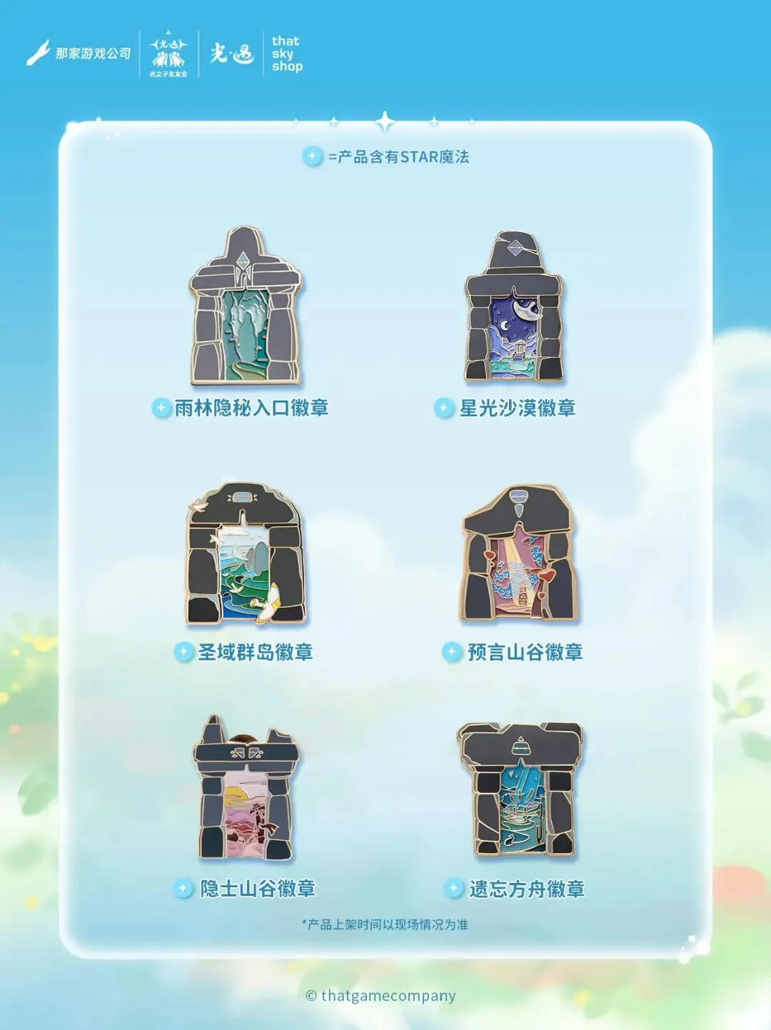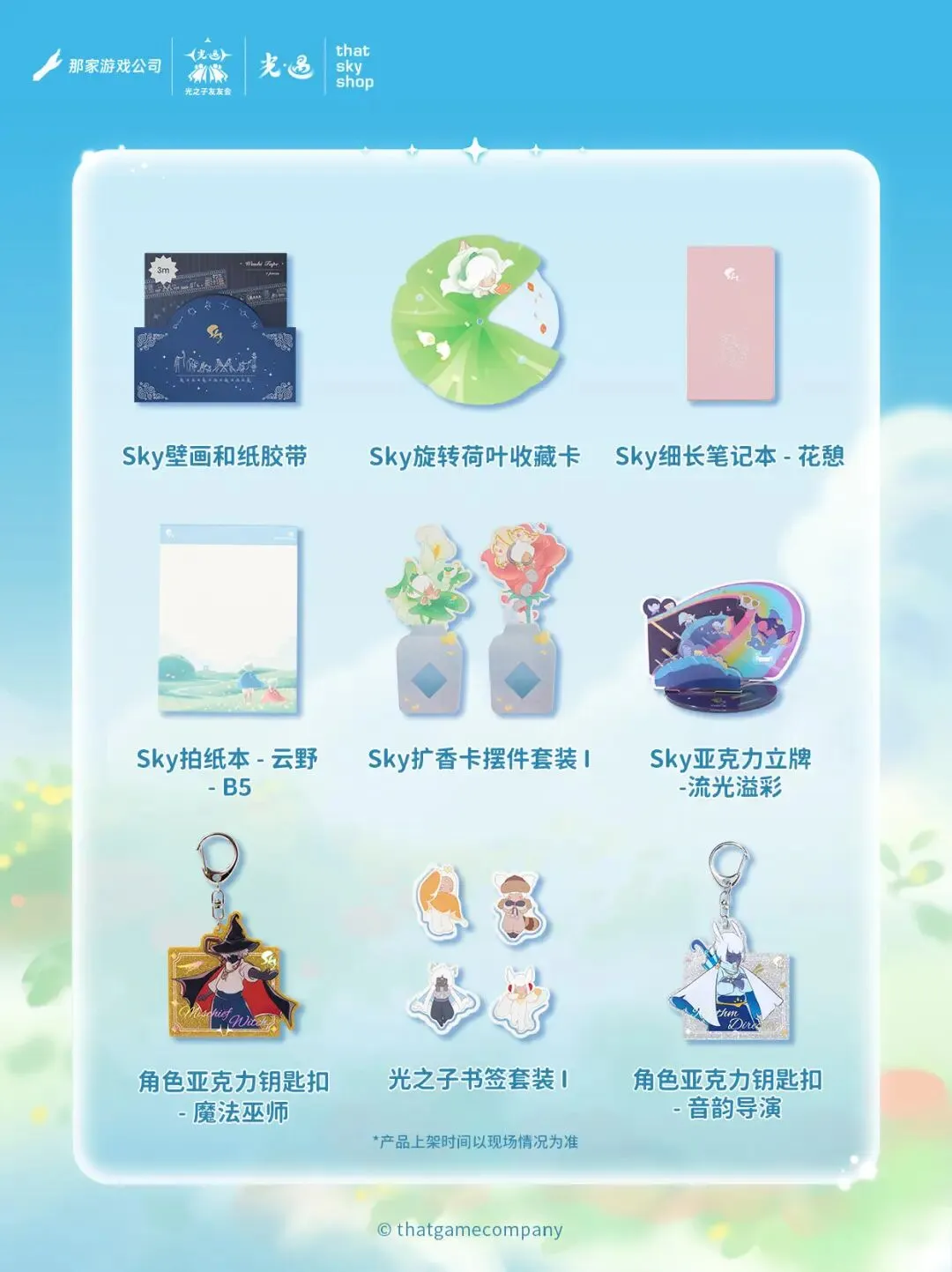 光遇金属书签 - 洛城闻笛、光遇亚克力可晃钥匙扣 - 樱花、光遇亚克力可晃钥匙扣 - 紫藤花、光遇亚克力可晃钥匙扣 - 马蹄莲、Sky小憩纽扣徽章 - 冥龙、Sky x Moomin 光栅纽扣徽章 - 友谊 I、Sky纽扣徽章 - 贴贴、Sky贴纸 - 流光溢彩、Sky立体钥匙扣 - 彩纸冥龙、Sky立体冰箱贴 - 鲲鹏、Sky立体冰箱贴 - 小奥
