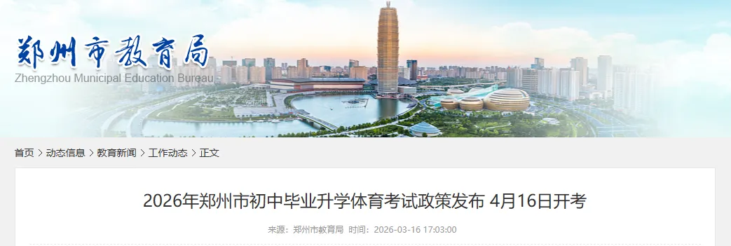 近日,郑州市教育局发布了2026年郑州市初中毕业升学体育考试政策,总分值为100分,计入中考总成绩。