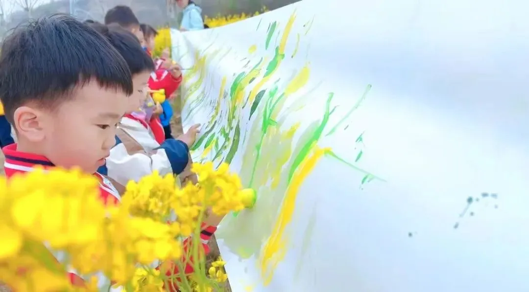 想象一下,金黄的油菜花田像一片金色的海洋,微风拂过,涌起层层花浪。孩子们置身其中,手持特制的长条画卷,将眼前如诗如画的美景用画笔描绘下来。这不仅是一场绘画创作,更是一次与大自然的深度对话。