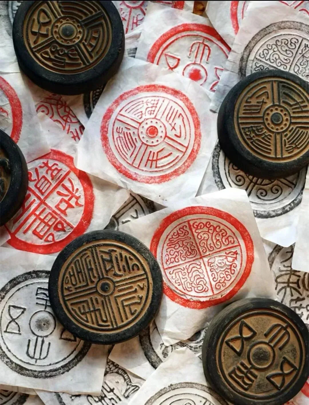 使宣纸与瓦当的每一处纹理紧密贴合,