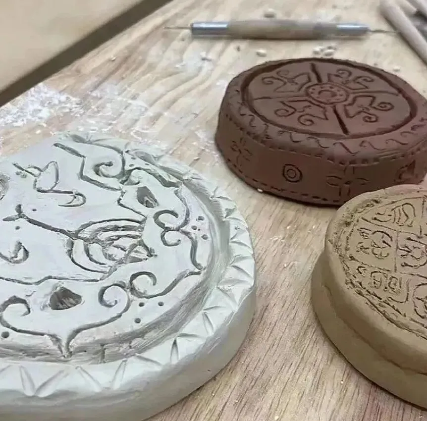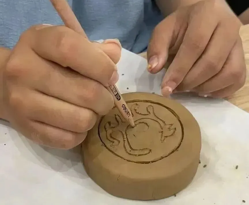 在装饰瓦当环节,同学们的创意如泉涌般迸发。有的同学模仿古代的云纹图案,用刻刀精心雕琢,线条流畅自然;有的同学则别出心裁,将现代的卡通形象融入瓦当设计,古老与现代的碰撞,产生了奇妙的效果。
