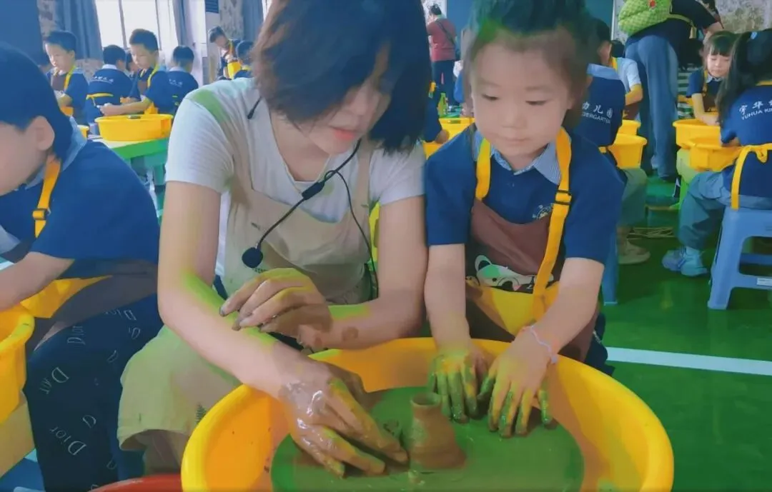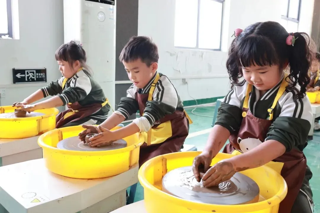在专业陶艺老师的耐心指导下,孩子们轻轻触摸陶土,感受它的柔软与可塑性。随着拉坯机的缓缓转动,孩子们凭借双手的力量,将陶土塑造成各种奇妙的形状,有的像小巧玲珑的杯子,还有的像造型独特的花瓶。