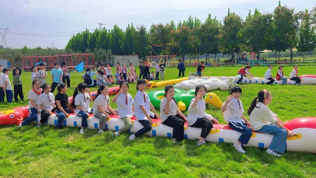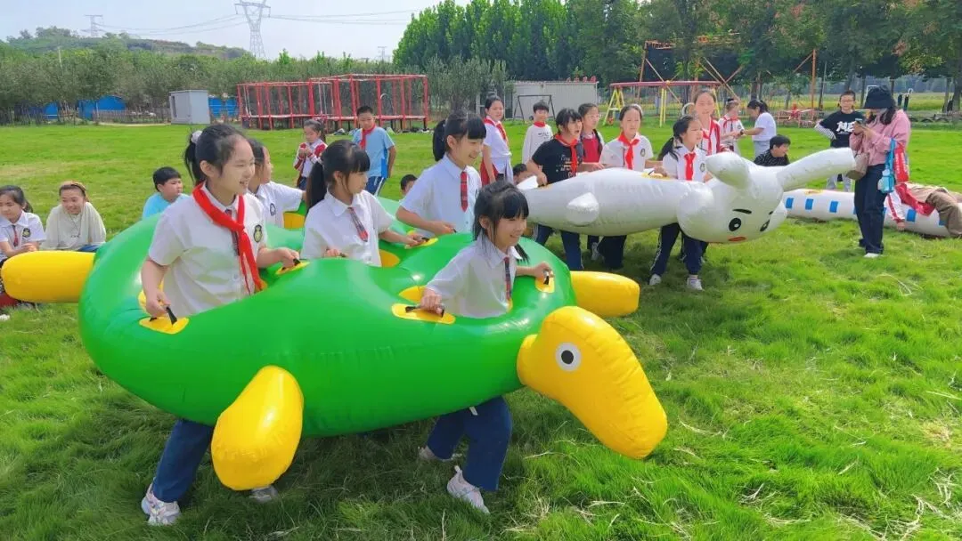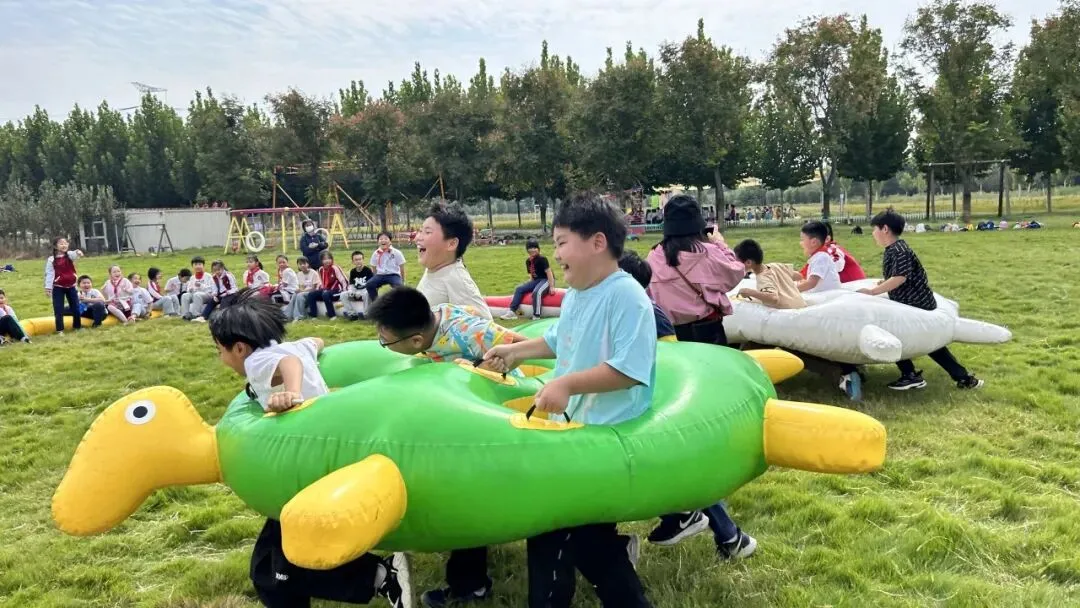 翻滚、跳跃!在开阔的草坪上,孩子们分组挑战“龟兔赛跑”动车一号速度赛”。团队协作、策略制定、体能爆发……输赢不重要,重要的是学会在汗水中笑着奔跑!