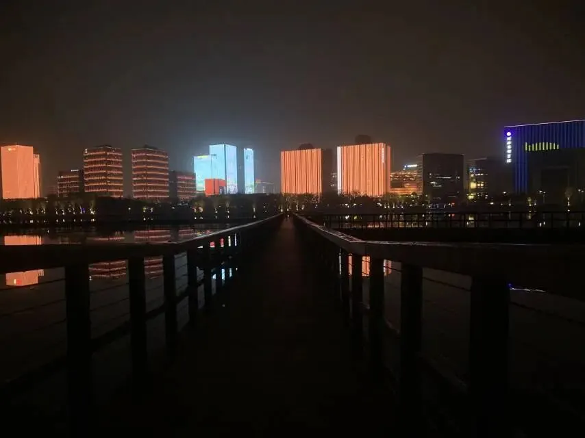 这一路,仍是充满惊喜的,桥洞下有五彩的灯光,独特的创意画,铺着鹅卵石的浅水面,那鱼,那乌龟,那鹅卵石那夜色与灯光交杂营造的氛围像极了海底世界,所以这里自然也成了孩子们最爱的地方,也是走着走着,我才发现这其中的妙处,原来龙子湖是个四面环水的小岛,建筑师用这个特点,将龙子湖中心的大楼装饰满了灯光,如此,灯光不仅成了美景,还起到了照明的作用,波光粼粼的湖面更是与此成了天作之合,这一夜,距离并没有让我的喜悦和兴趣削减半分,我如此地陶醉其中,临走时更是依依不舍。