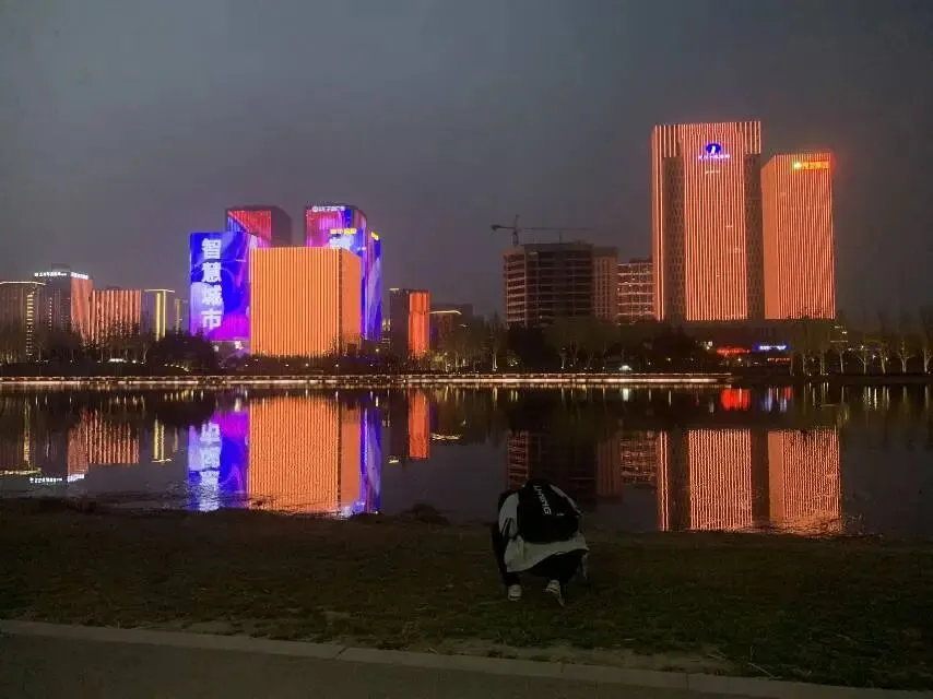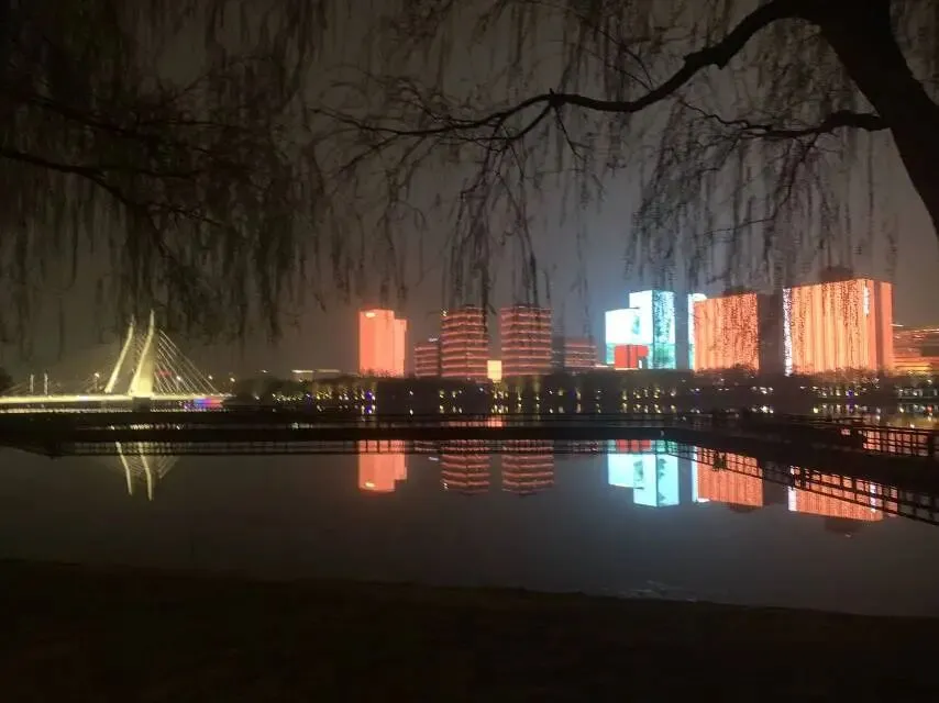 夜游小记 ——梁 初来郑州的一个傍晚,一阵对龙子湖夜景的好奇促使我来了一场龙子湖夜游,将近龙子湖时,一阵夹杂着水汽的晚风拂面,清凉温和,再走近些,当眼前只剩一片湖面时,我的心颤动了一下,一座座别致的大桥连接着两岸,抬眼看去,对岸是一排排装饰着霓虹灯的大厦,那灯光映射在湖面上,风吹起,湖面波光粼粼,向湖面和灯光延展的地方望去又是不同的灯不一样的景,我不由得走去,