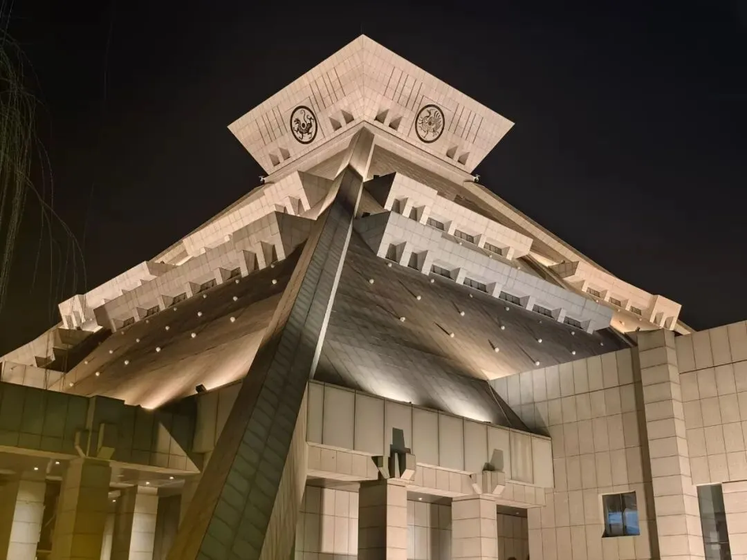 很幸运预约到了当天晚上的两张票,于是火速和妈妈一同赶到住处,放好行李,前往河南博物院。导航到目的地时,我便被博物院的建筑外观吸引了,很是独特。