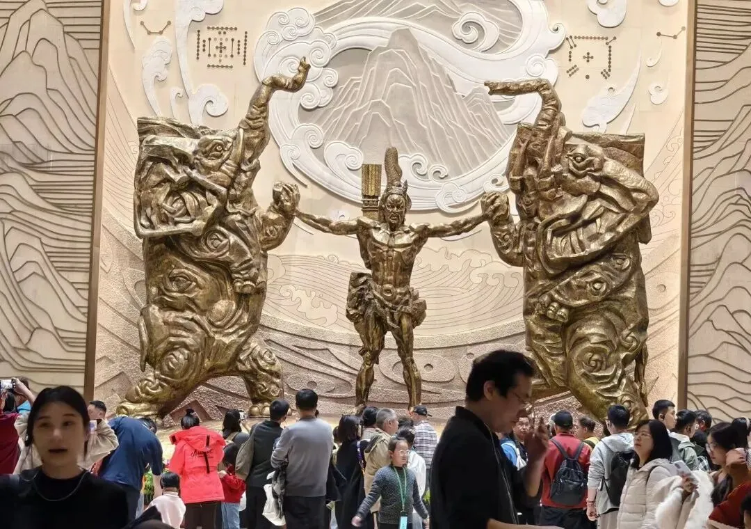 由于馆内有比较多的非文字性介绍,逛博物馆这件事妈妈反而比我更在行。序厅里全是商汤建国的浮雕,她向我详细介绍了商汤是如何建立政权的。她很擅长观察具体的神态和行为,而我因为全然依托于字反而解读局限了些。