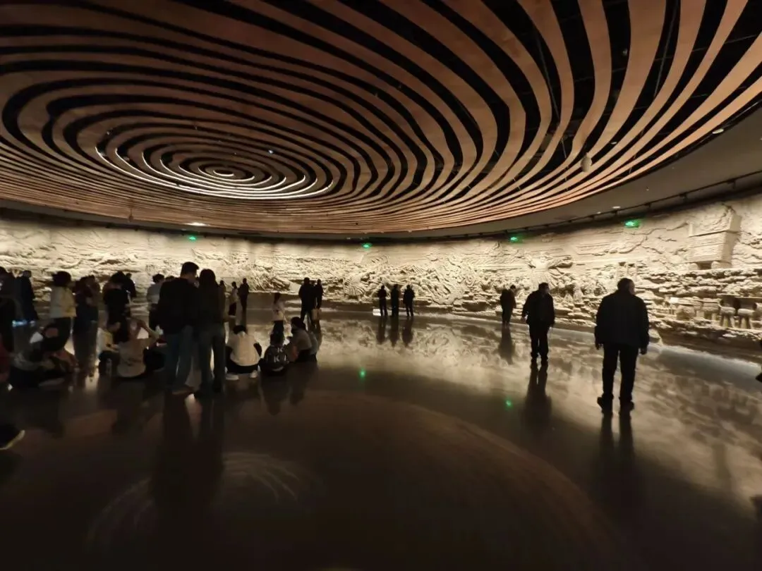 可惜的是,晚上不开放四楼的两个展厅。我之前看过西北几个省博,很多都是按照朝代进行展示的,相关的内容大差不差。因为时间仓促并且带着我妈,所以没有租讲解器。我觉得讲解器很适合一个人慢悠悠逛。也没有想着找人工讲解,因为这对于我妈妈来说意义不大——我想,国内几乎没有哪家博物馆有彝文讲解。