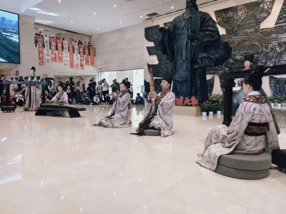拍完刚好赶上一场表演,用商朝的乐器演奏古曲和现代曲子。古代的乐器发出来的声音都很好听,悠扬、平静、悦耳。相对而言,我觉得现代的音乐有些吵。