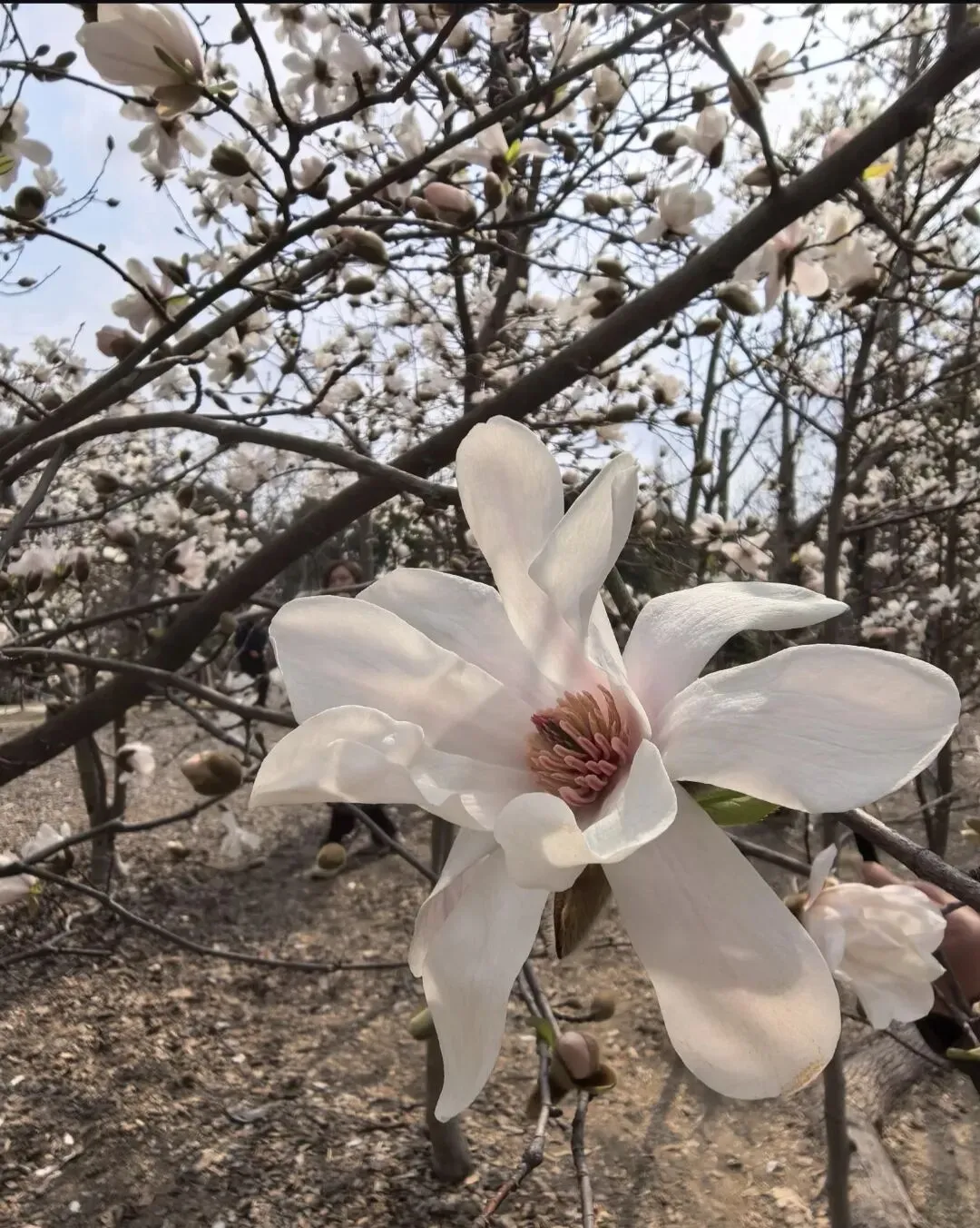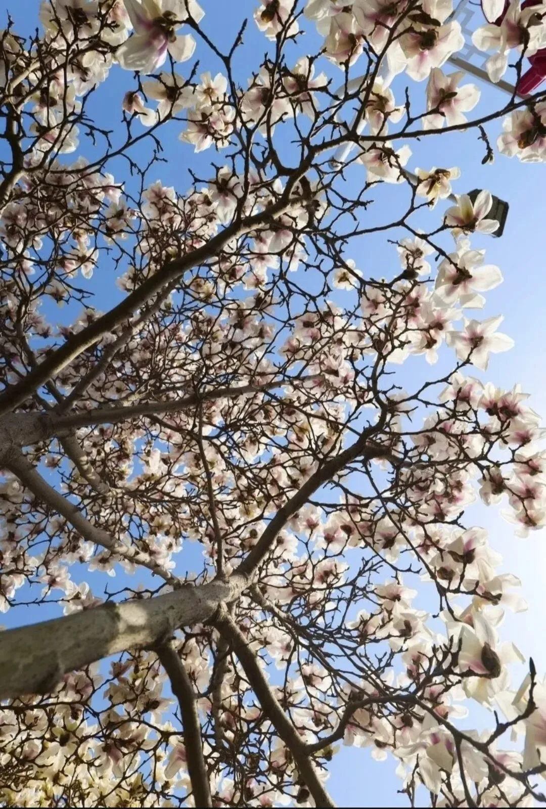 与美人梅同期绽放的,还有一树树玉兰。洁白如玉的白玉兰、淡雅粉紫的二乔玉兰,高高绽放在枝头,不惹尘埃,优雅如仙子。在蓝天的映衬下,花瓣温润通透,散发着淡淡的清香,点缀在古色古香的亭台楼阁间,自带一份清冷又高级的诗意。无需低头寻觅,抬眼便是芳华,这是属于高处的春日浪漫,偶有身着汉服的身影穿行廊下,衣袂轻扬,与玉兰花影两两相映,一眼便撞进中式春日的雅致里。