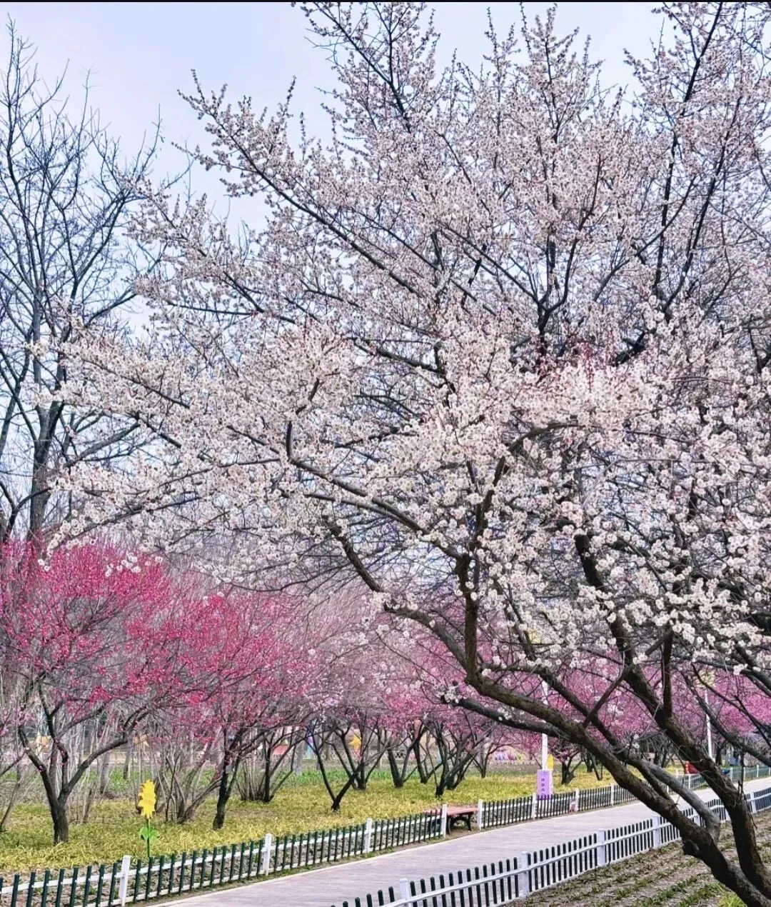 春风拂过,绿博园便裹进了一片温柔的粉色里,碧桃、海棠、樱花正次第绽放,把浪漫写到了极致。碧桃开得热烈,满树繁花如云似锦,灼灼其华,站在桃林里,仿佛闯入了童话秘境;垂丝海棠柔柔弱弱,花瓣轻垂枝头,风一吹便轻轻摇曳,落英簌簌,温柔到了骨子里;晚樱紧随其后,大片粉白花海如云似雪,樱花小道上,花瓣随风飘落,踩上去软软的,连脚步都忍不住放慢。