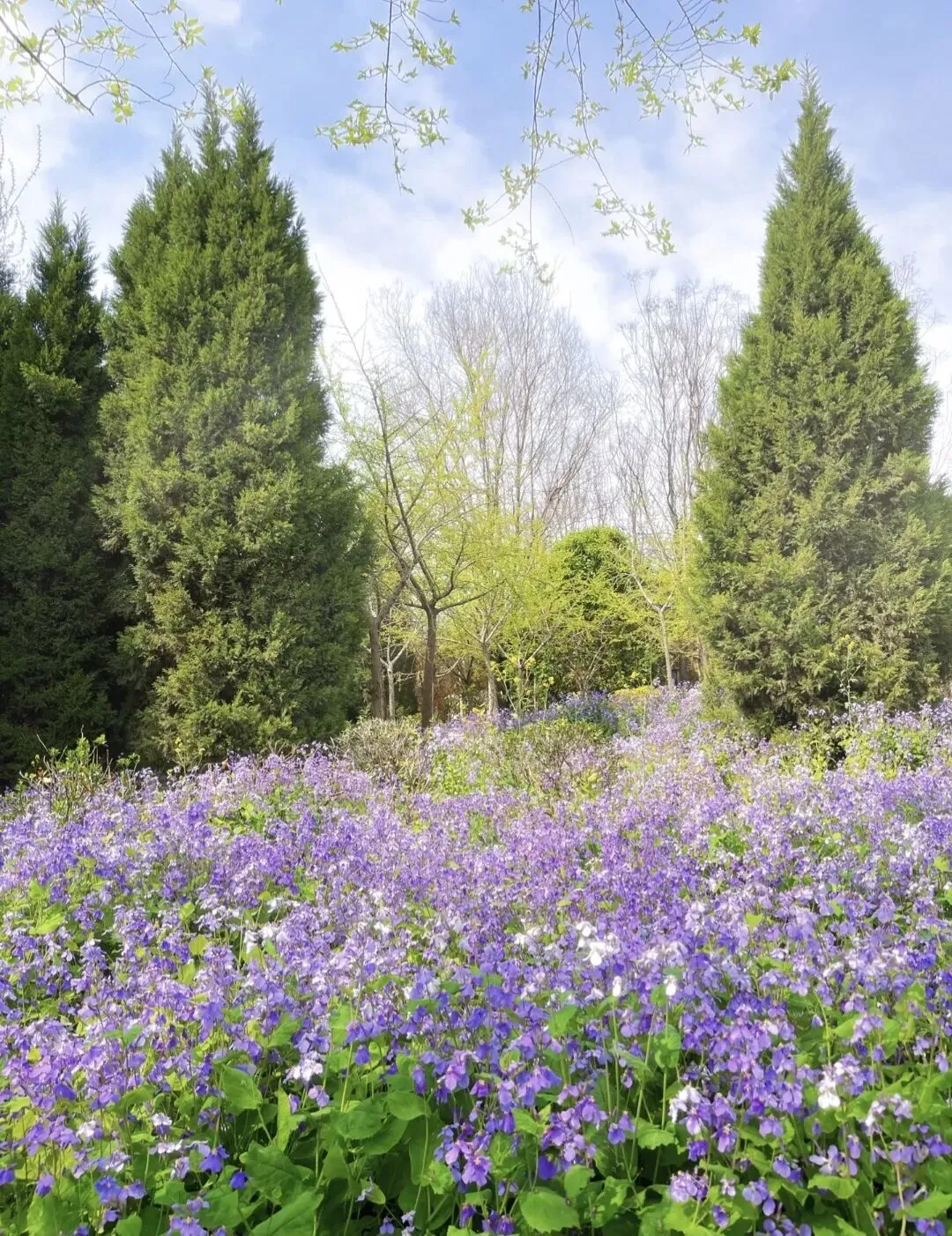 除了成片的夺目花海,绿博园的角落里,还藏着不期而遇的小美好。竹林旁、树荫下,二月兰铺满地面,淡紫色的小花星星点点,清新淡雅,不与繁花争艳,却默默装点着林间的静谧;还有各类不知名的小野花,顺着春风肆意生长,随性又自在。问花,不必只问名花贵卉,每一朵努力绽放的小花,都有属于自己的春天,都值得被温柔以待,林间偶尔飘来轻缓的民乐声,为这份静谧漫步,添上几分恰到好处的雅致。