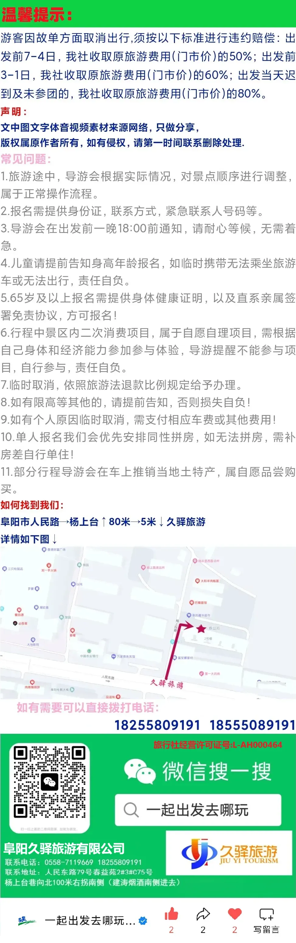 集合地点:阜阳体育场北门汽修厂内(县城具体时间位置以导游通知为准)