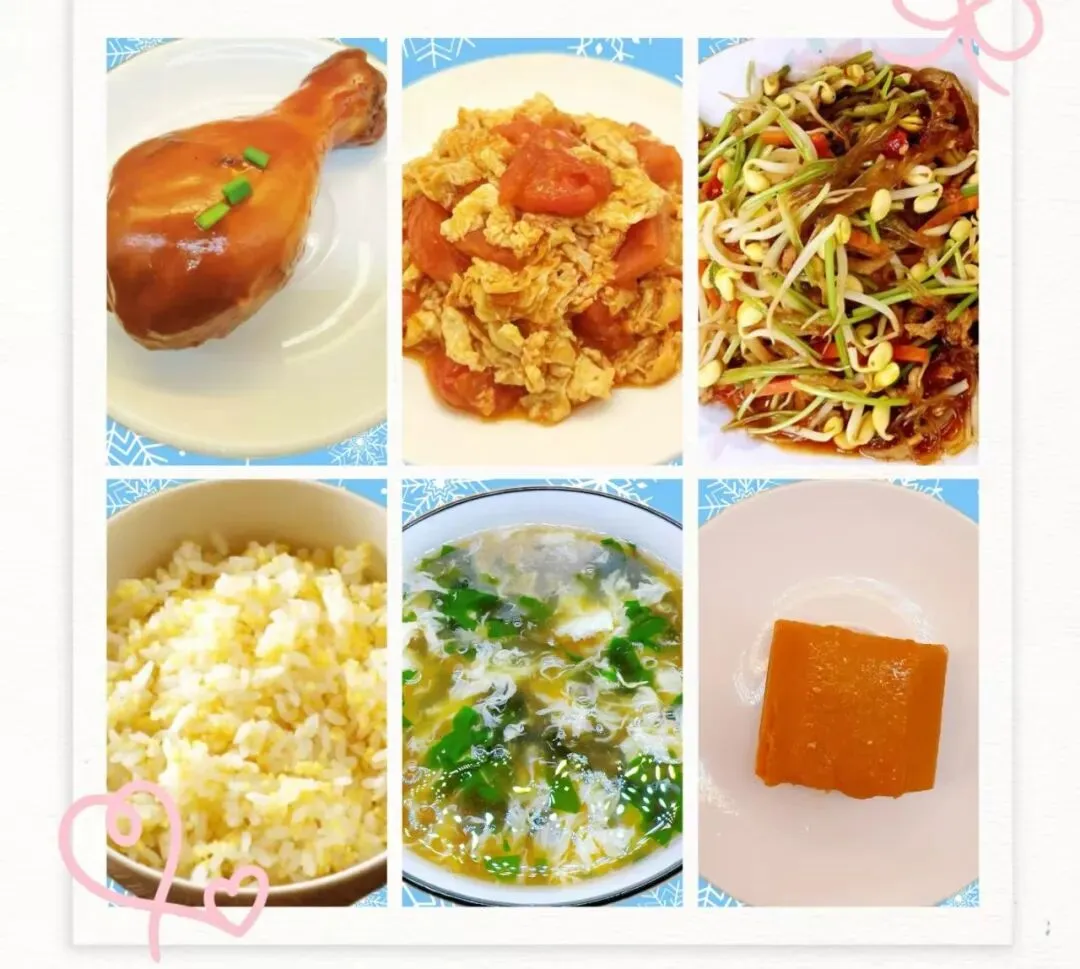 西红柿面条汤:西红柿块10g,鸡蛋5g,袋装挂面15g,上海青碎5g;