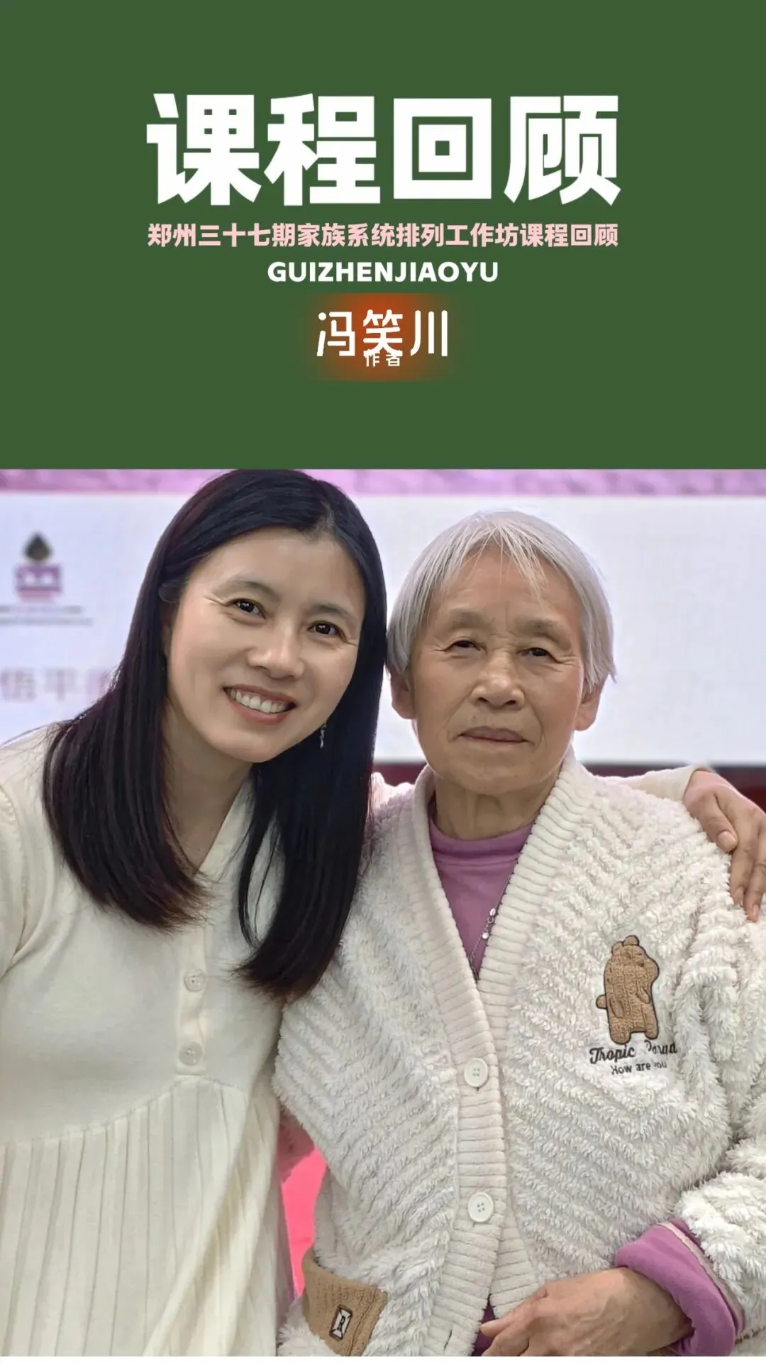 我老公有一句经典名言:“孙老师说的都对,只是我做不到。”怎么可能都做到了,今天能够做出来一点点改变,明天就可能打回原形。如孙老师说我冯笑川眼睛里露着凶光,那个凶光是我改变之前的日常,而大家哪天看到我温柔了一点点都觉得是一个巨大的转变。孙老师说的都对,他是带领着我们学好的,跟着他几年下来心里莫名其妙的想要做点好事,这个是一个果子,而那个跟随的过程是因。