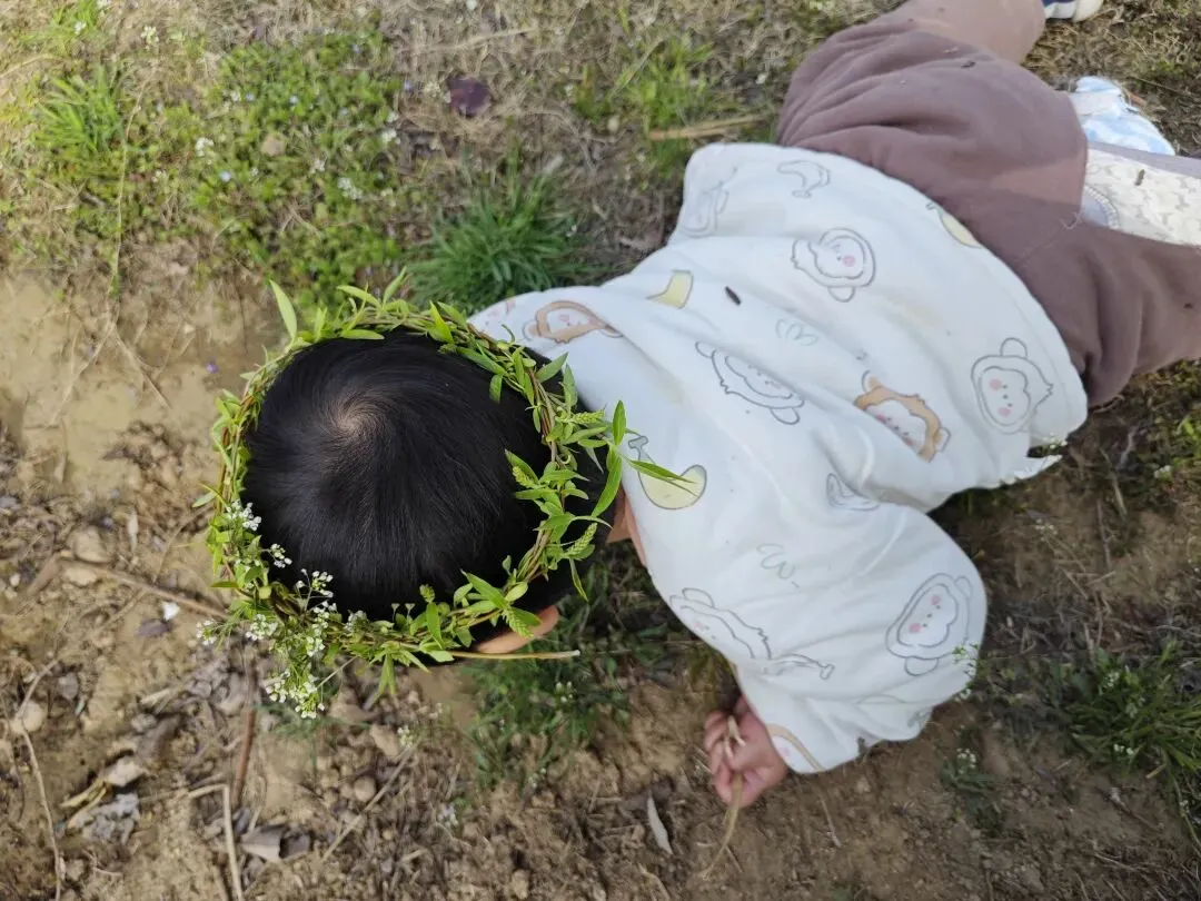 我带着孩子在湖边玩了两个多小时。他一直在趴着玩土,喊都喊不走,很入迷,很专心。其实,把他放到地上放养,真的好轻松。无非就是脏了回家洗洗罢了。