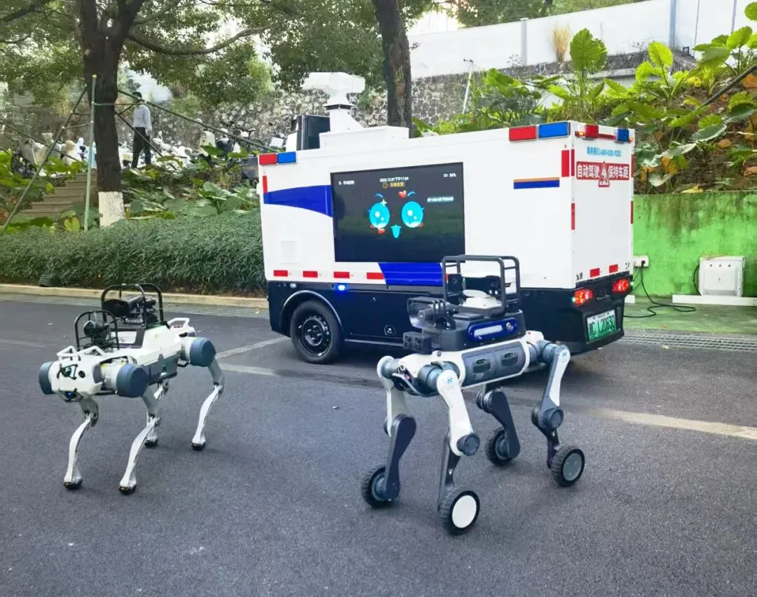连续三年写入政府工作报告,人工智能正从技术“工具”升级为赋能千行百业的“数字基座”。当深圳龙岗、无锡高新区等地竞相“养龙虾”时,郑州航空港经济综合实验区已率先建起中部最大算力“养虾池”,积极打造“人工智能之城”,用人工智能将这里的枢纽“流量”,转化为产业“留量”、经济“增量”。3月的郑州航空港,春花攀枝,人工智能(机器人)产业园内同样春潮澎湃。京海盛大(郑州)科技有限公司展厅内,一辆“空地一体”无人巡检车格外吸睛。车身配备高清摄像头、传感器,车顶可搭载无人机,车身便携智能机器狗能自动巡逻、抓拍违停、行为检测,还配有急救包,可实现突发事件快速响应。