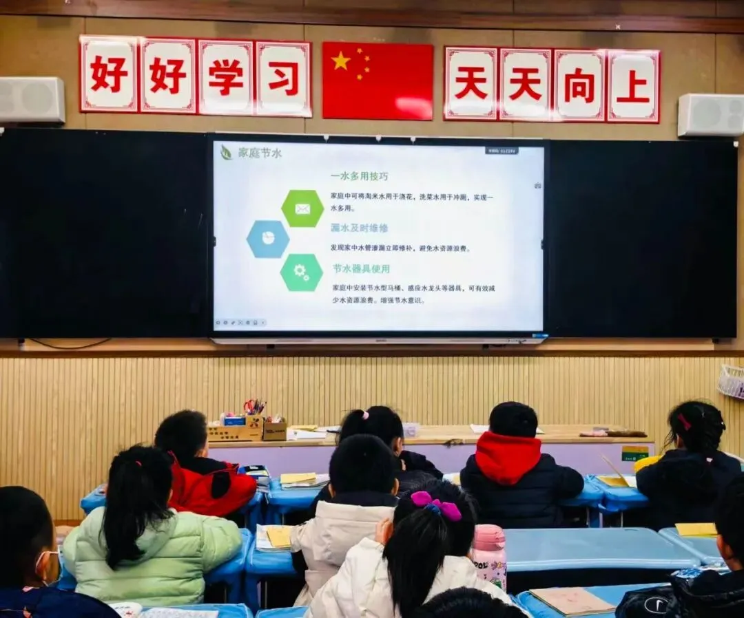 随后,各班级有序开展节水主题班会。班主任借助课件、视频等素材,引导学生认识水资源现状、学习节水妙招,课堂上师生互动热烈,同学们分享日常节水做法,交流节水心得,在潜移默化中深化对节水的认知,将理念转化为行动自觉。