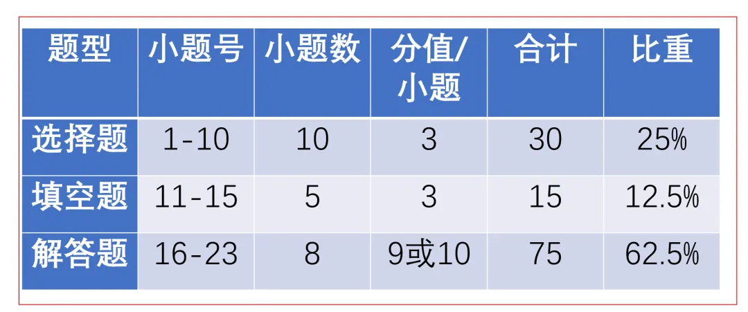 试卷考试时间100分钟,满分120分,共三个大题23个小题,阅读量约为2400字。