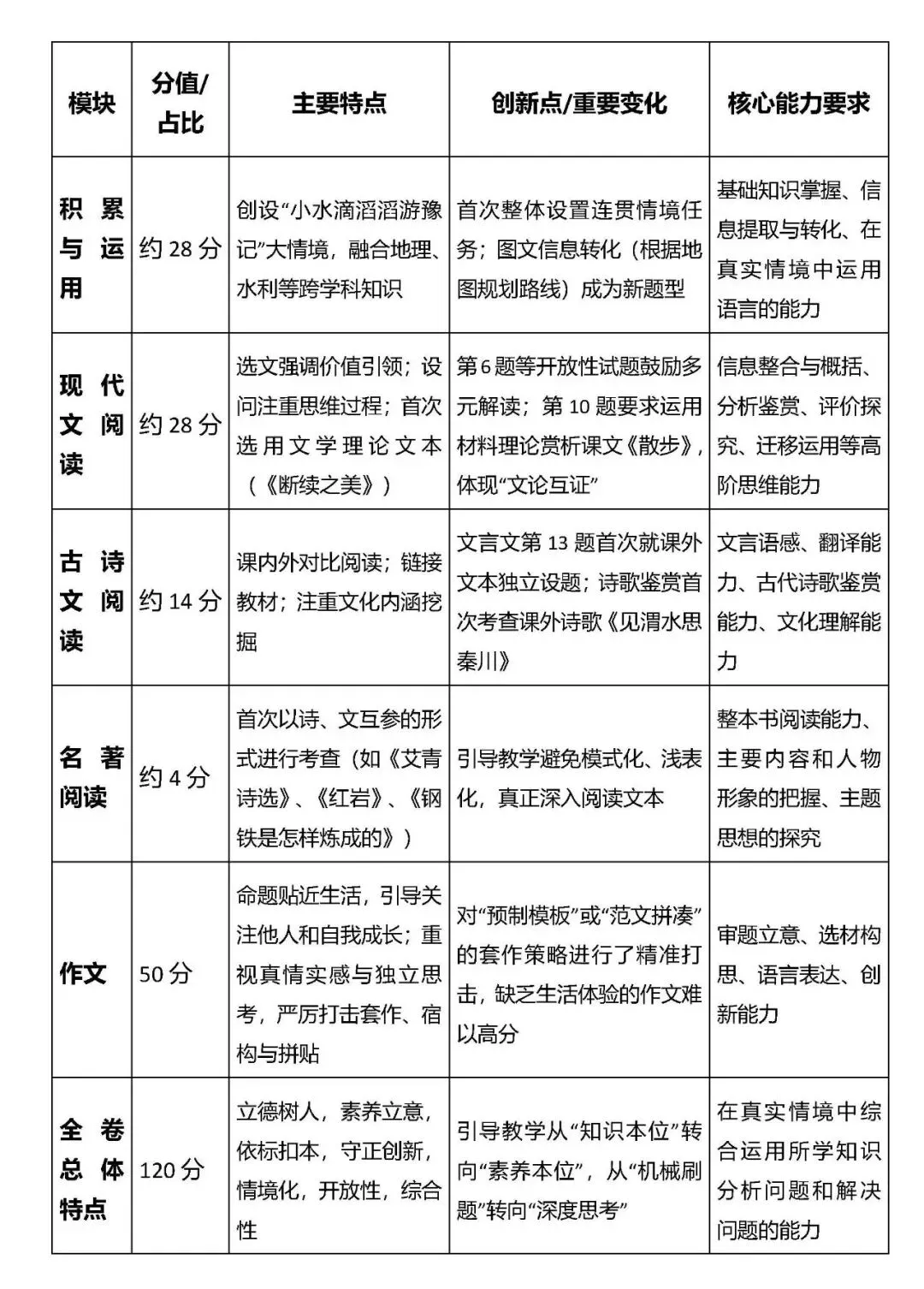 ▲全卷各板块呈现“素养导向、情境化、开放性”的命题特点。语文关键重视:⬇
