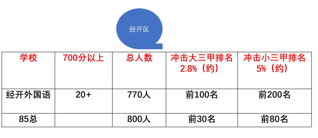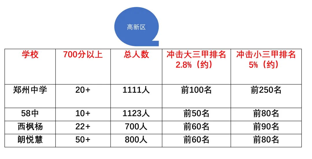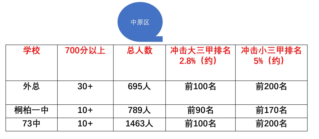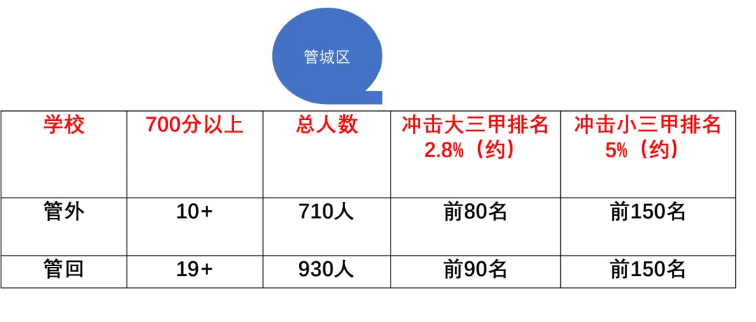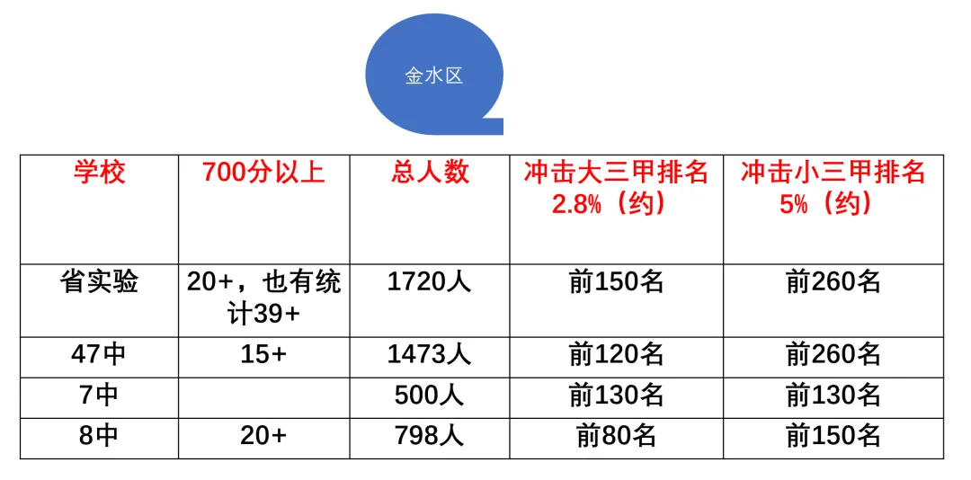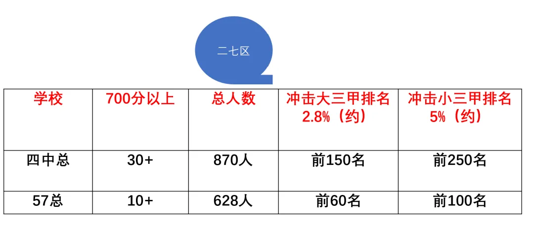 无论哪个区,还是哪个学校,冲击大三甲,市排名需要达到前2200名,如果冲击大小三甲,需要排名达到前4100名。