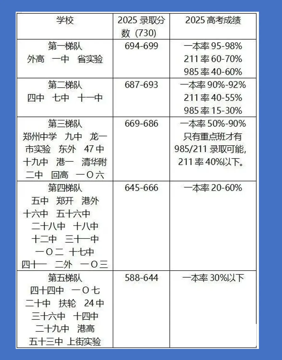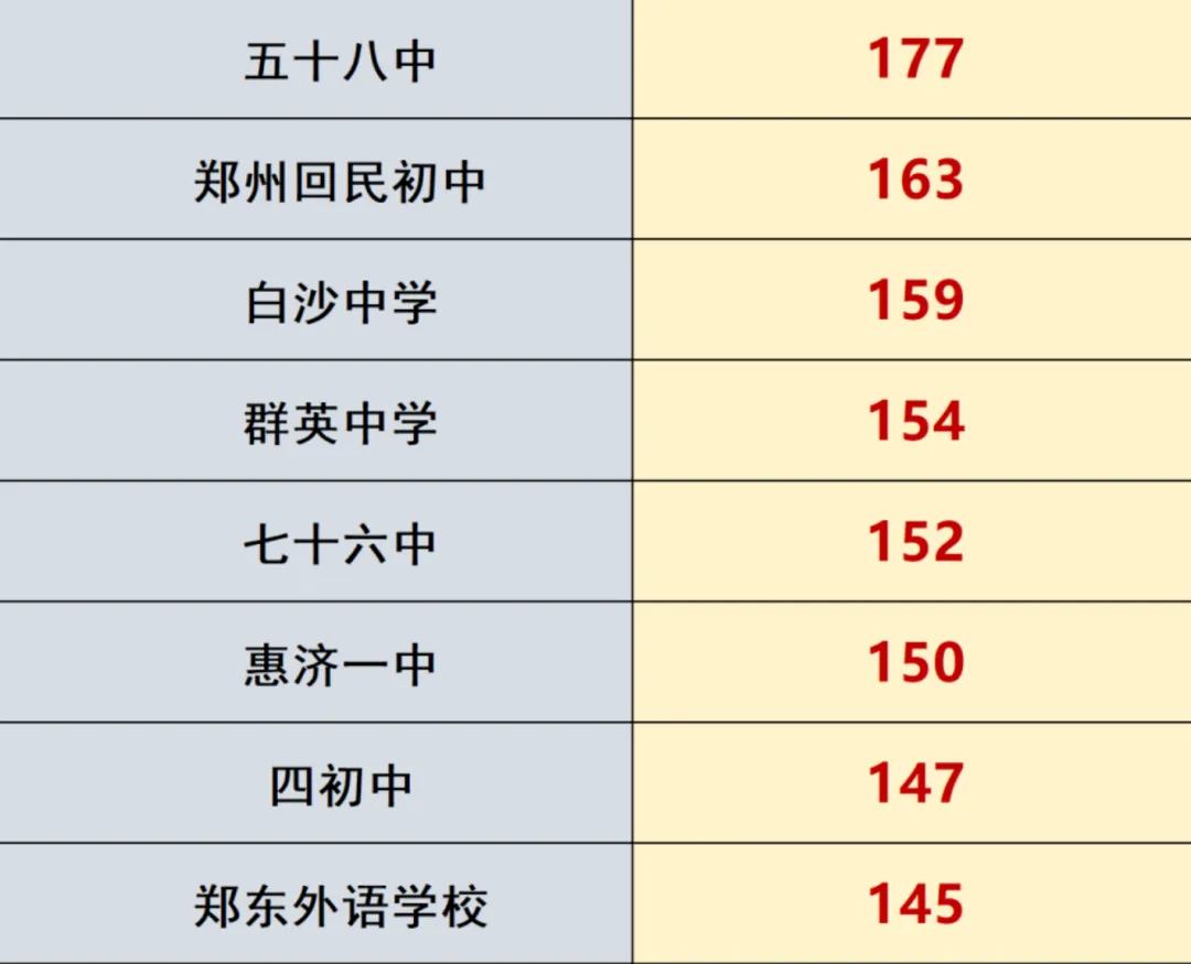 郑州管城外国语:毕业生 710 人,大三甲录取 76 人(录取率 11%),大小三甲录取 143 人(录取率 20%),一批次高中录取 460 人(录取率 65%)。