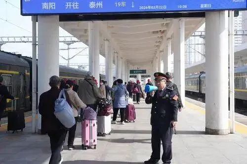 3月22日,随着搭载600余名游客的Y466/7次列车从南阳站缓缓驶出,开往泰州,标志着国铁集团郑州局今年首趟跨省赏花旅游列车开行,为游客春游踏青赏花提供出行新选择。