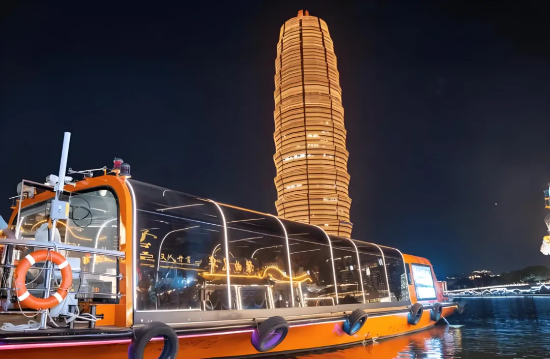 坐船看大玉米灯光秀,水幕电影配情话,湖边还有小吃摊,表白成功率直接拉满,大学生情侣直接冲!