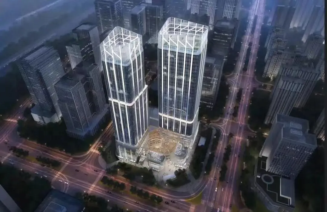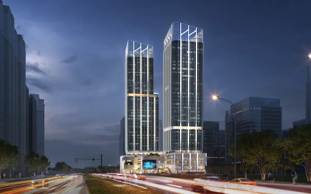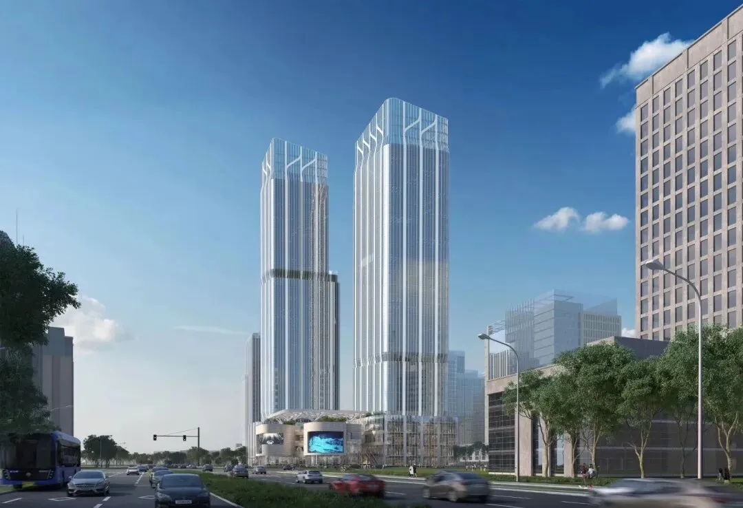 郑州创智科技中心项目位于郑东新区康宁街、心怡路、普济路、健安街围合区域,是郑州市城市更新工作领导小组办公室公示的重点项目之一。项目总投资额达18.6亿元,占地面积约1.7万平方米,总建筑面积约16.5万平方米,建筑高度为150米,地下4层,地上由双子塔及裙楼组成。项目实施主体为郑州新发展科创实业有限公司,旨在打造汇聚“金融+科技+传媒”的区域总部中心,吸引跨国企业驻郑的中原总部,加速东区产业升级,为郑东崛起提供新动能。项目由Aedas操刀设计,设计融合绿色低碳理念与现代城市美学。超高层双子塔东、西两座150米塔楼并立,形成标志性天际线,塔楼间通过低层商业裙房连接,营造开放式城市界面。项目通过“垂直叠合城市”理念,实现功能复合与立体交通的有机结合。西塔办公空间与东塔行政公寓通过裙楼商业无缝衔接,形成集商业、办公、居住于一体的综合体。