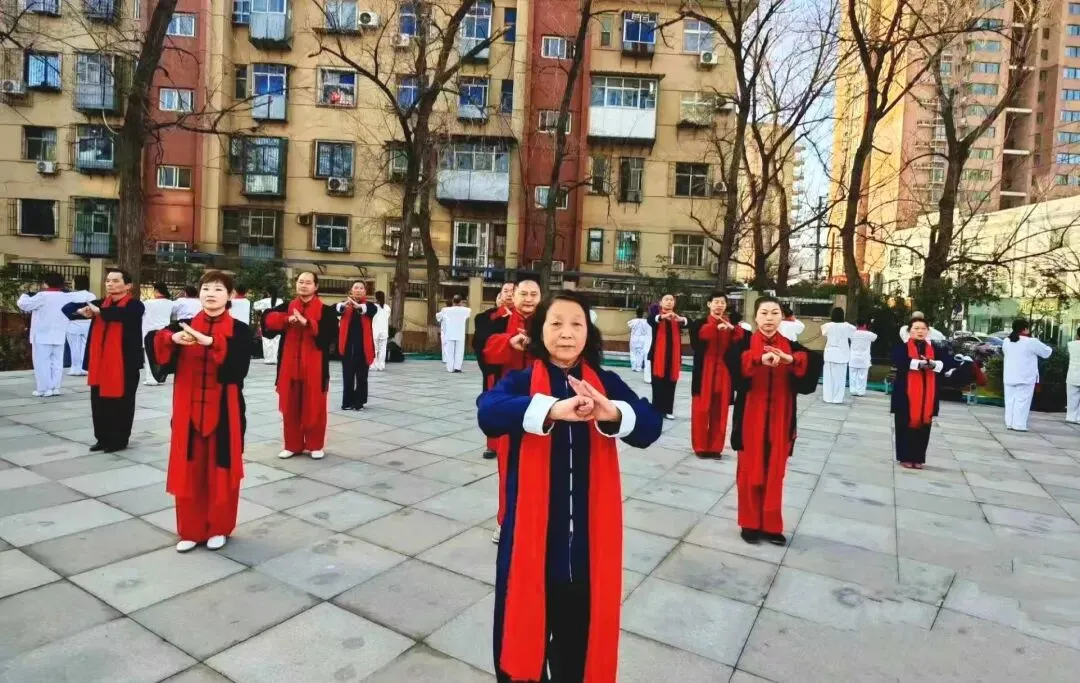 展演现场阵容整齐有序、气势恢宏大气。爱好者们身着统一服饰,伴随着悠扬的旋律,以沉稳舒展的身姿、精准规范的招式,完整演绎陈式太极拳的精髓要义。滨河岸畔,太极神韵流转,营造出“人人练太极、处处扬文化”的浓厚氛围,真切展现了老年群体对太极运动的热忱与蓬勃活力。