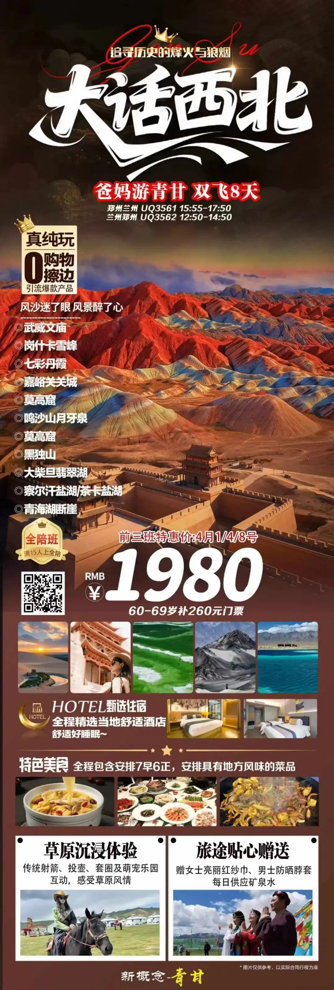 💝💝真纯玩甘青大环线-双飞8日游 1980元