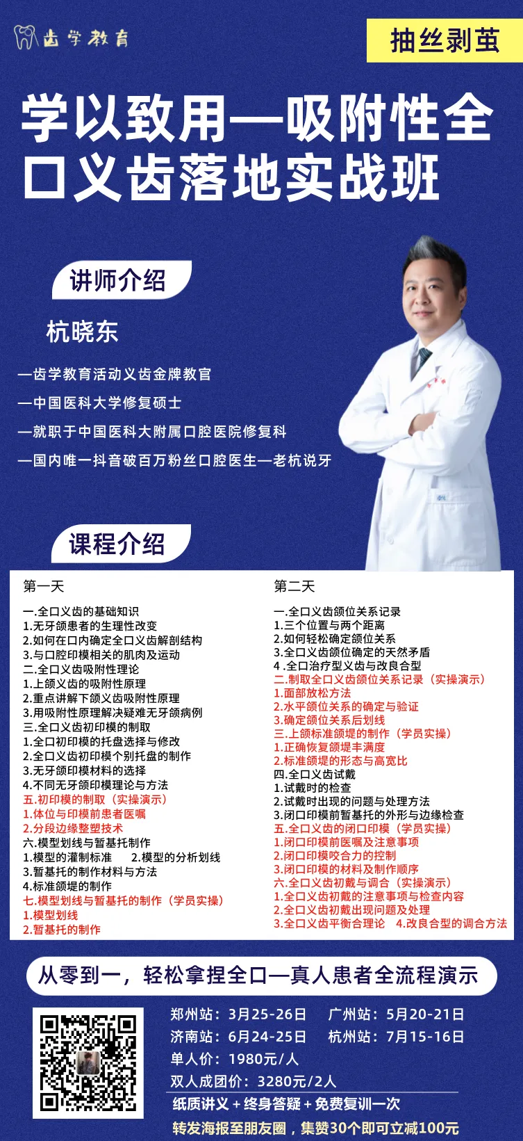 中国医科大修复学硕士、中国医科大修复科主治医师、老杭说牙主理人、义齿知名讲师杭晓东老师主讲,理论+实操,真实患者从接诊到戴牙,全过程演示,从底层逻辑出发,从零到一轻松带你拿捏全口义齿修复!!