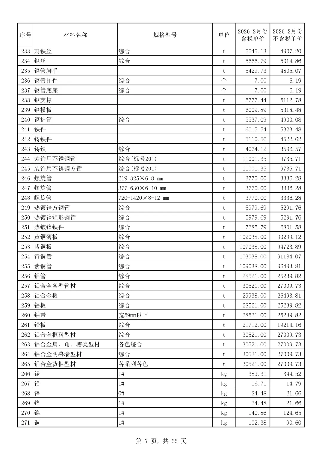 2月份,钢筋、型钢价格下降,钢板、钢管价格涨跌不一,有色金属价格上涨,水泥、混凝土价格上涨。本价格信息为到工地价(郑州市区四环以内),已包含材料原价、运杂费、运输损耗和采购保管费。各类建设工程在编制工程设计概算,施工图预算,招标控制价时可参考使用本信息价。建设工程发承包双方在确定工程材料价格时,应充分预测市场风险,慎重决策。在签订合同时,应在合同中明确约定材料价格的确定和调整方法,材料价格的风险范围和幅度。