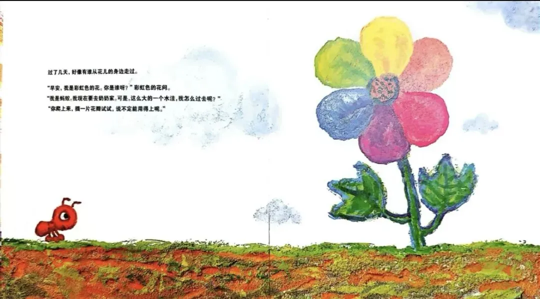 1.故事中的小蚂蚁遇到了什么困难,彩虹色的花是怎么帮助它解决的?