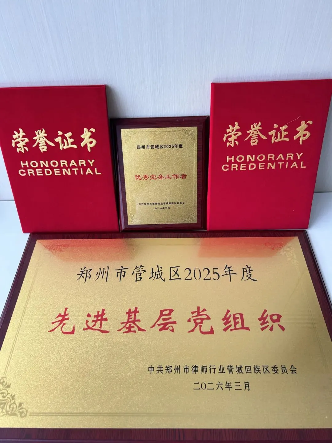 2026年3月22日,表彰仪式在德亿大酒店(郑州金水路曼哈顿店)四楼第一会议室举行的全区律师行业相关会议上进行。德恒郑州党总支代表分别参加了当日下午14:00的述职大会及16:00的律师工作总结大会,并现场接受了荣誉。