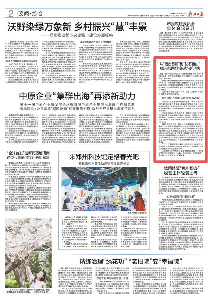 “‘十五五’规划纲要中,超硬材料、金刚石多次被写入,这是国家层面的重视,更是沉甸甸的责任。”鲁涛的话,道出了郑州超硬材料从业者的心声。