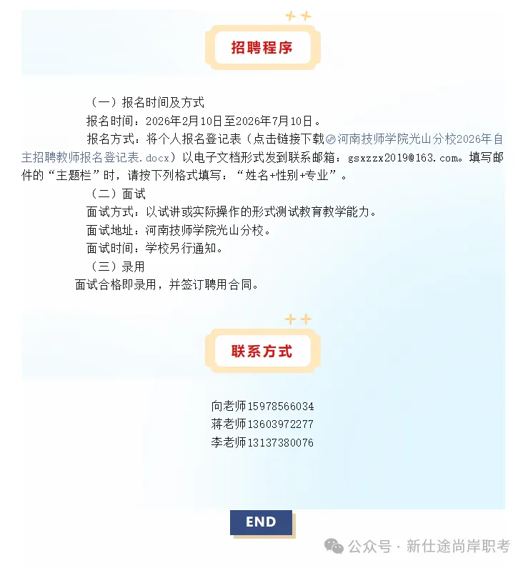 河南技师学院光山分校2026年2月招聘教师公告
